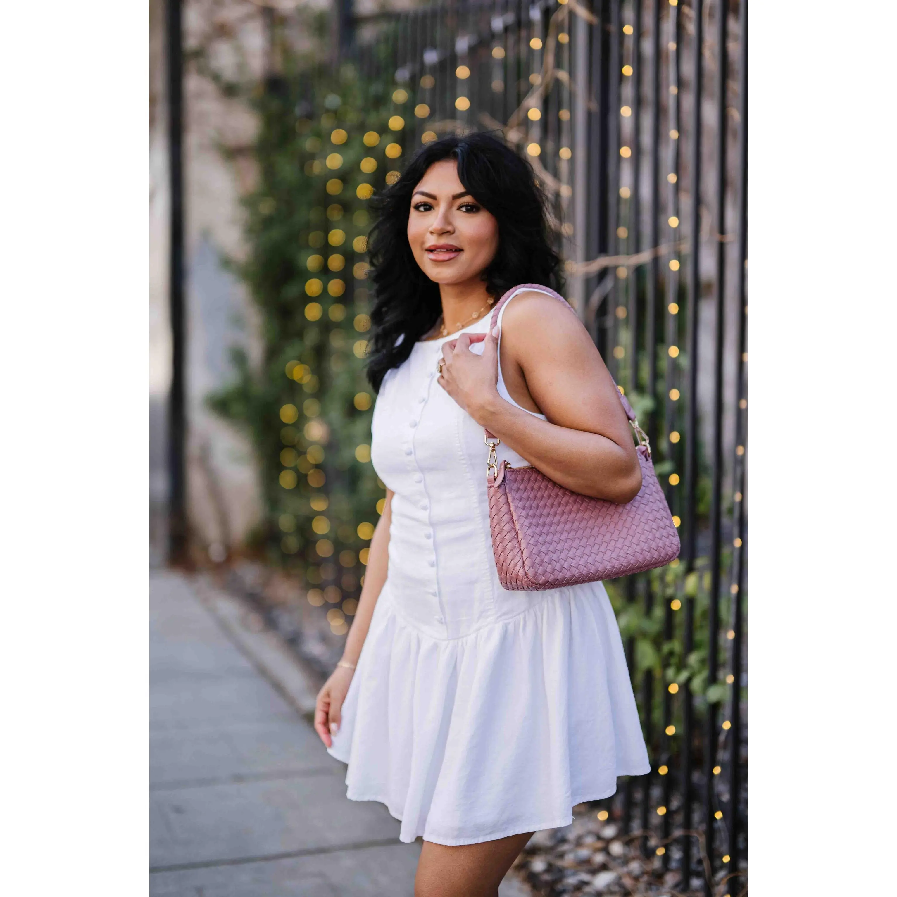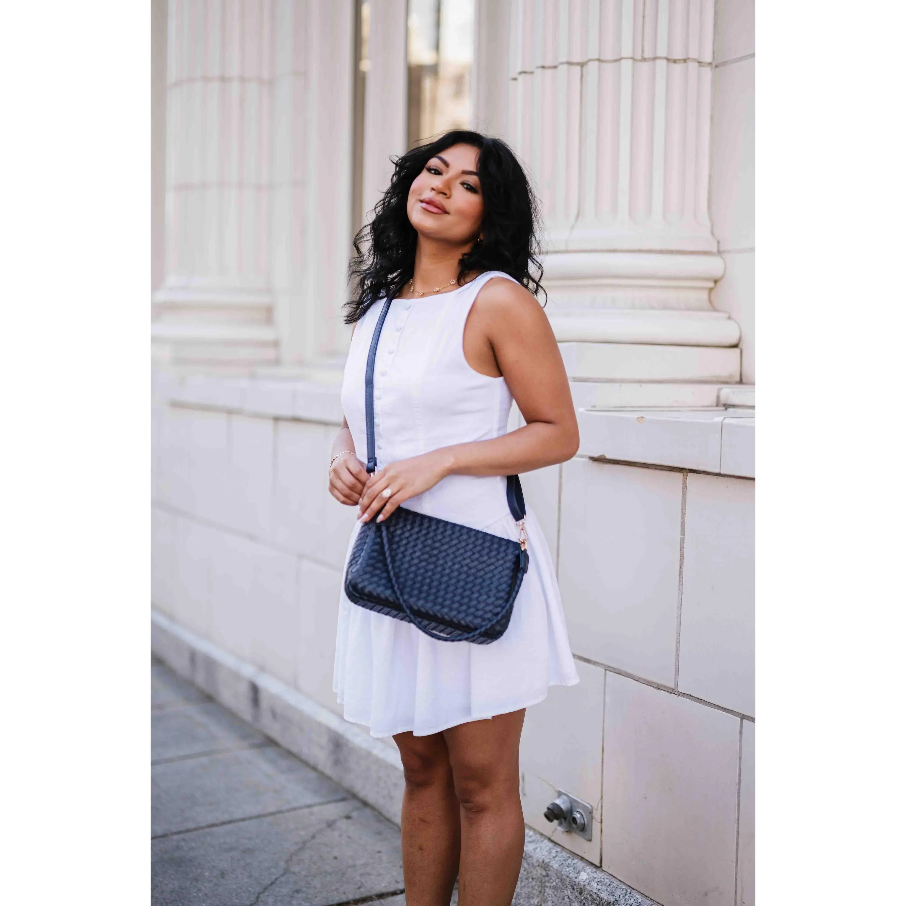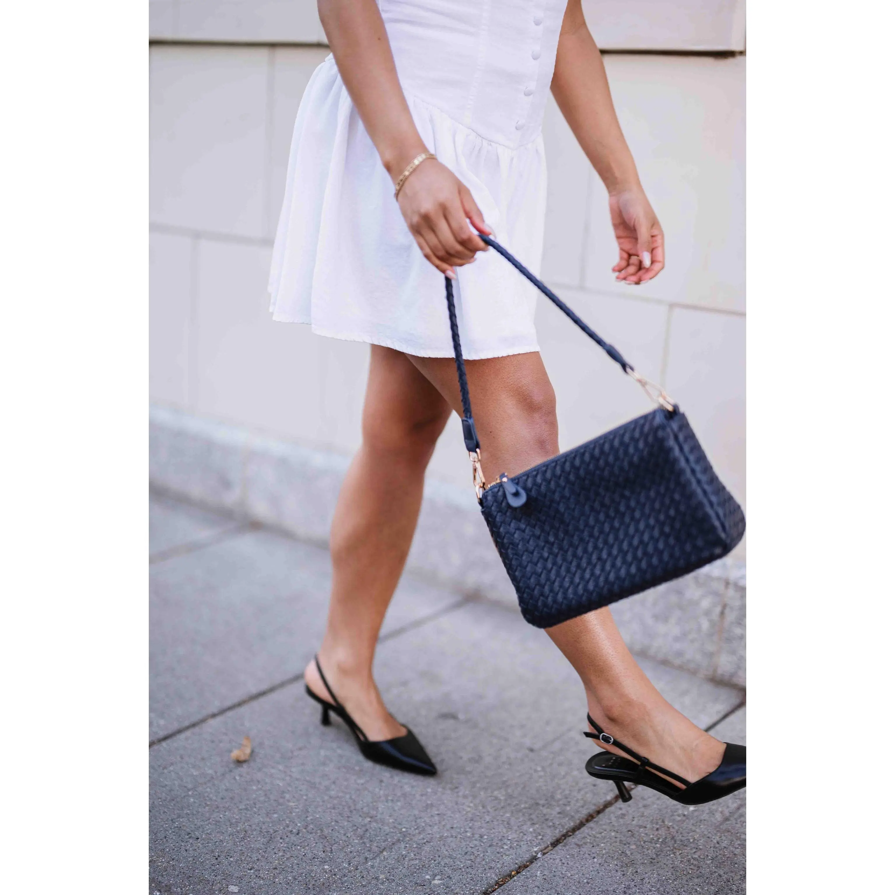 Available in a range of classic colors, the Elle woven crossbody purse pairs easily with casual outfits, workwear, or evening looks.