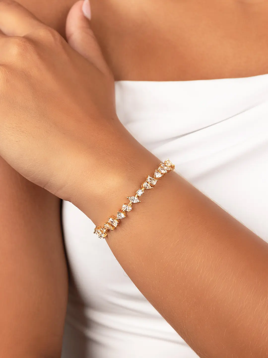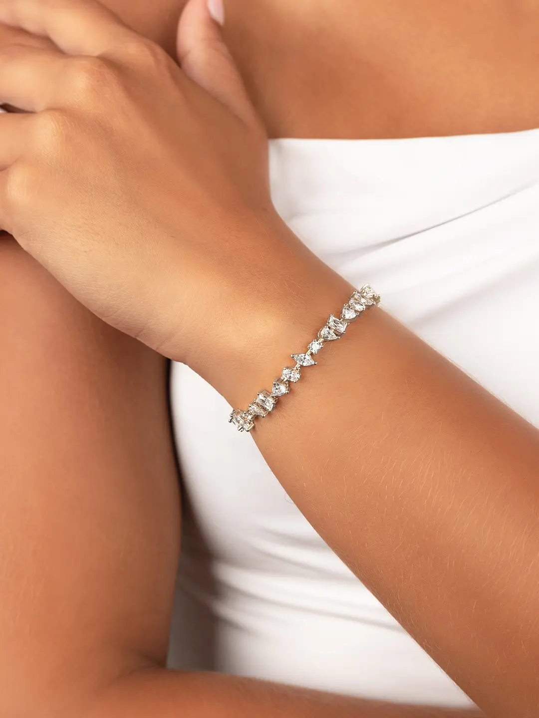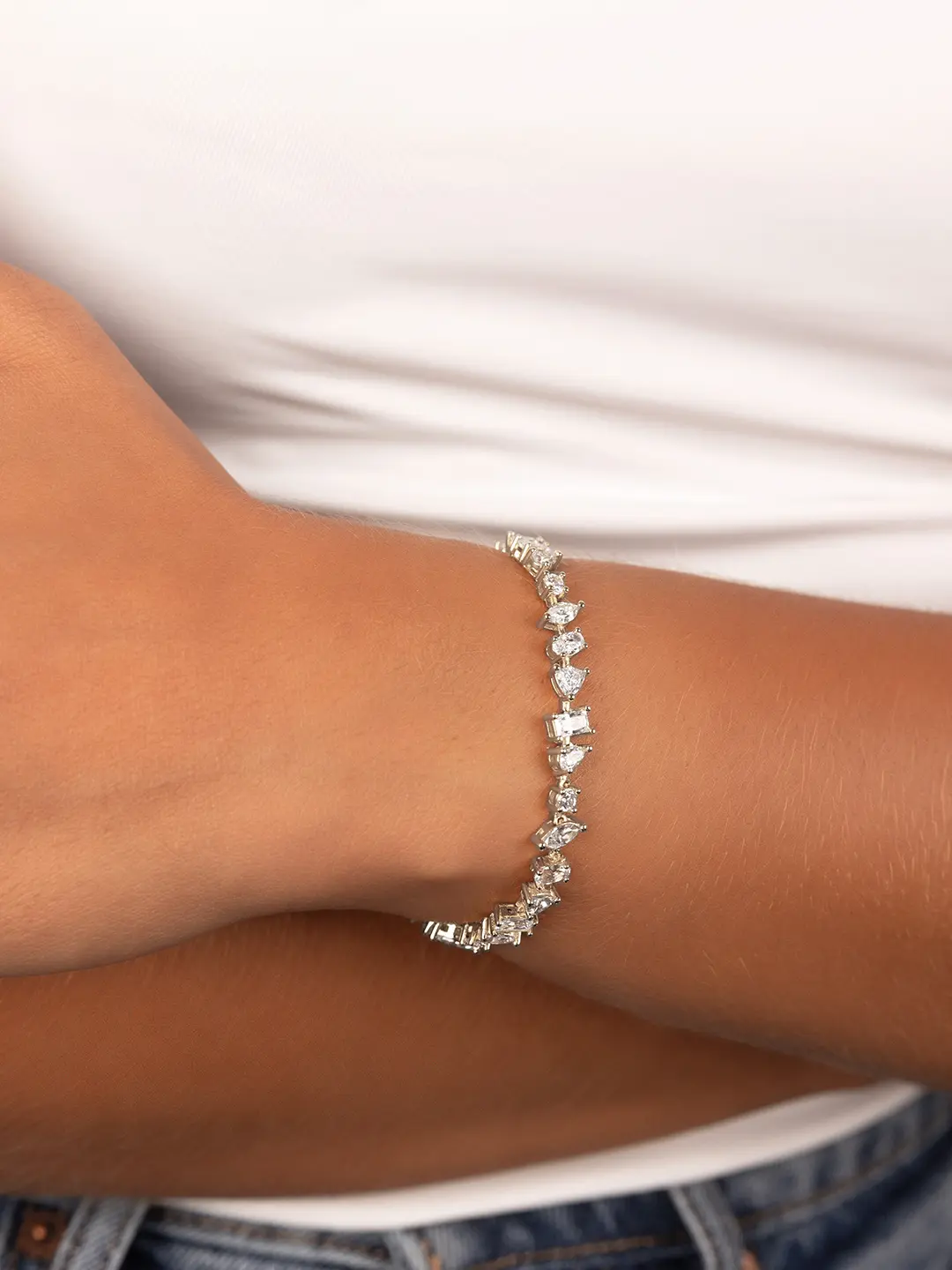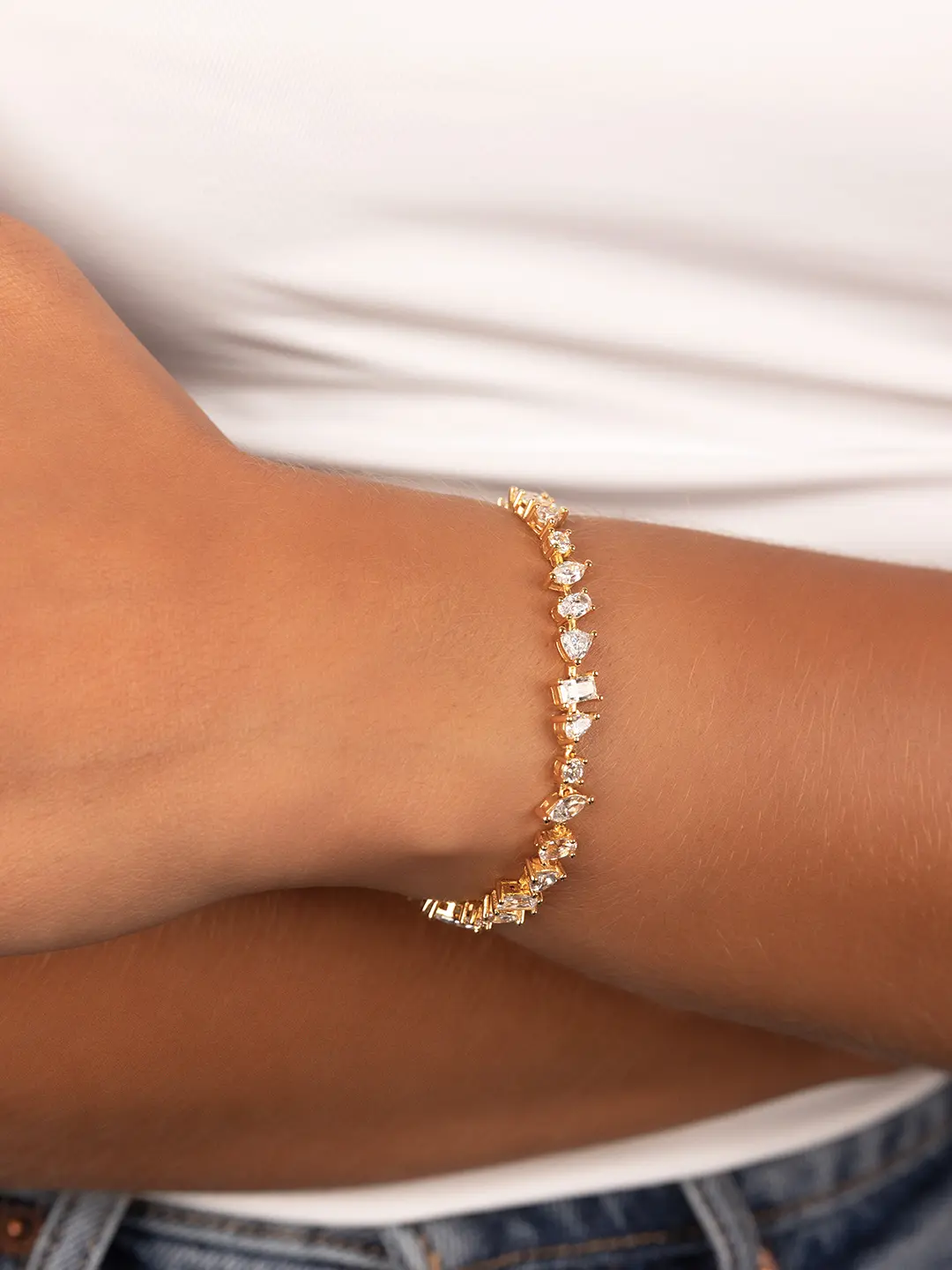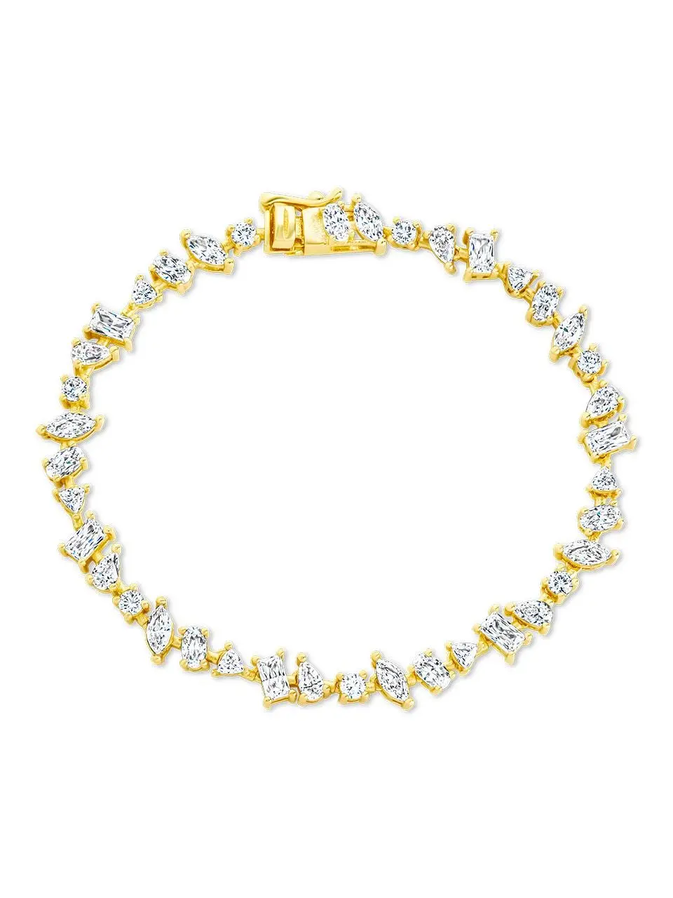 A mix of modern cuts in one bracelet made to catch the light. With alternating shapes and a sleek silhouette, this tennis bracelet adds just the right dose of sparkle. Pair it with your favorite stack or wear it on its own for a refined moment.