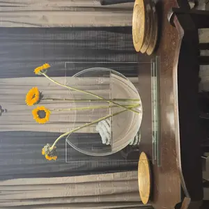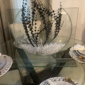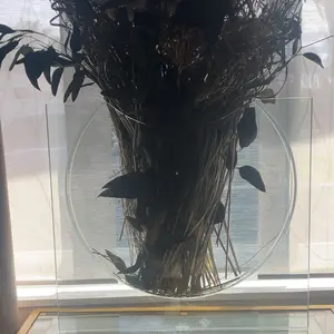 A study in negative space, the Ellipse Vase – Charcoal reimagines the classic large glass vase as a sculptural window of smoke and light. A sweeping charcoal crescent floats within a clear rectangular pane, making florals and branches appear to hover in midair.
