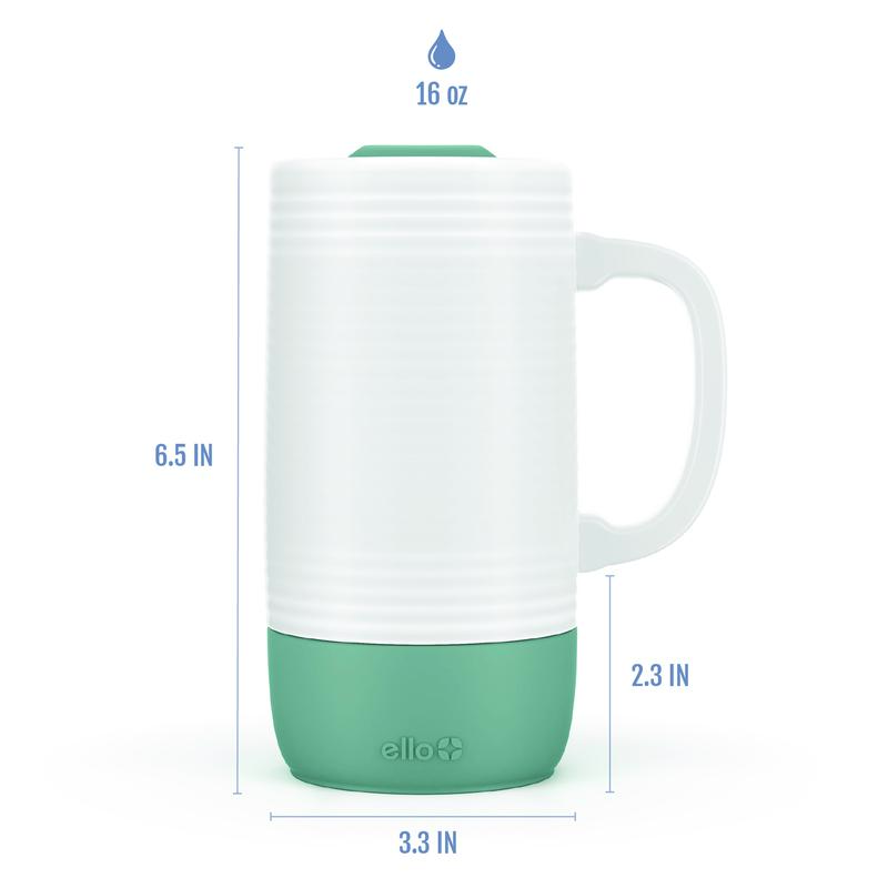 Bought this to replace a coffee travel mug by ello that I had broken. Never disappointed with Ello products! It was one of the only ceramic mugs left on the website that was a full 18 ounce capacity, had a silicone boot, and was affordable for me. I also bought from Ello their stainless steel travel utensils set with case. I was disappointed that the utensils were scratched and dented. . I am keeping them, however , because I don't know if they would ship me a better set. Also, I looked in Target and found a perfect set of the same utensils, but they were charging $3. 00 MORE THAN ON THE ELLO WEBSITE!! TOTAL RIPOFF!?