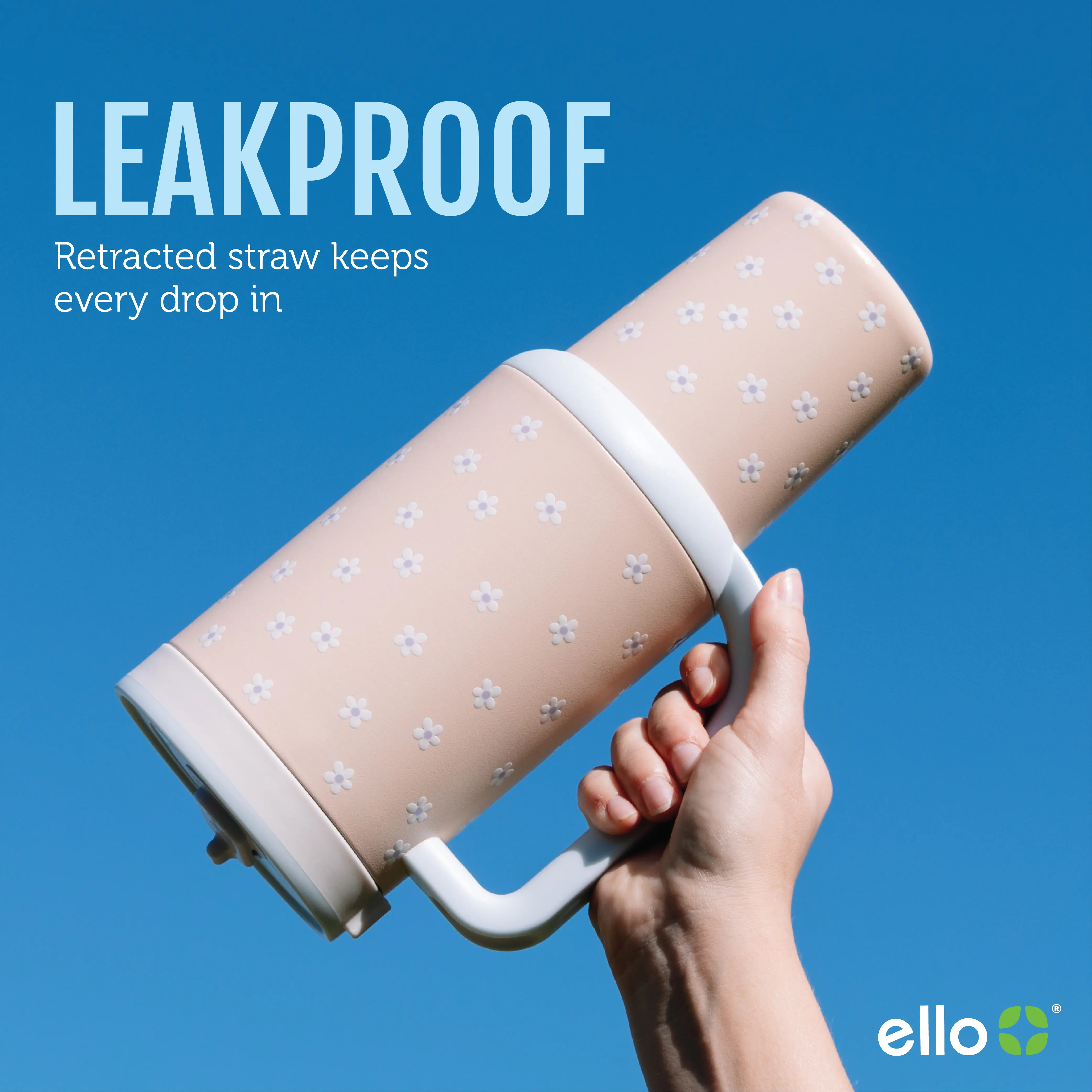 WHAT I'VE BEEN WAITING FOR!!!! So obsessed that you don't have to touch the straw to stow it away. I always get grossed out with the straw is exposed and you have to use dirt hands to open and close it. Passes the leakproof test! I also love the 3D flowers - it has a very cool texture in person!