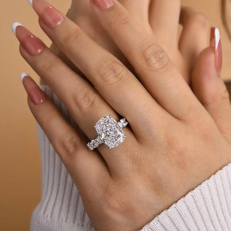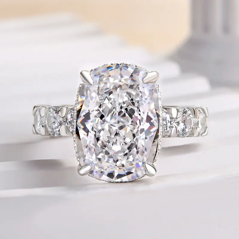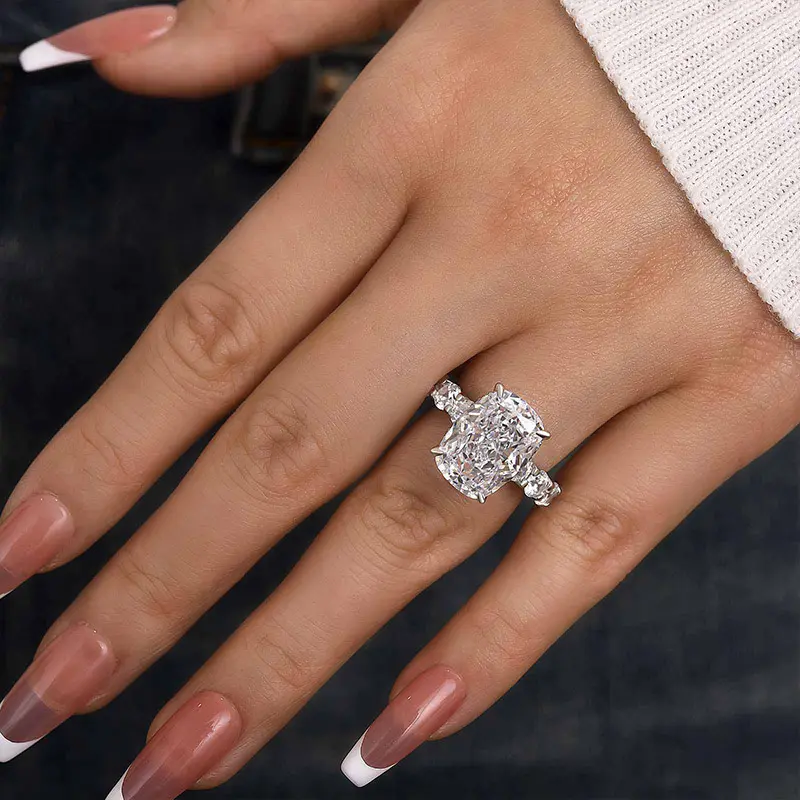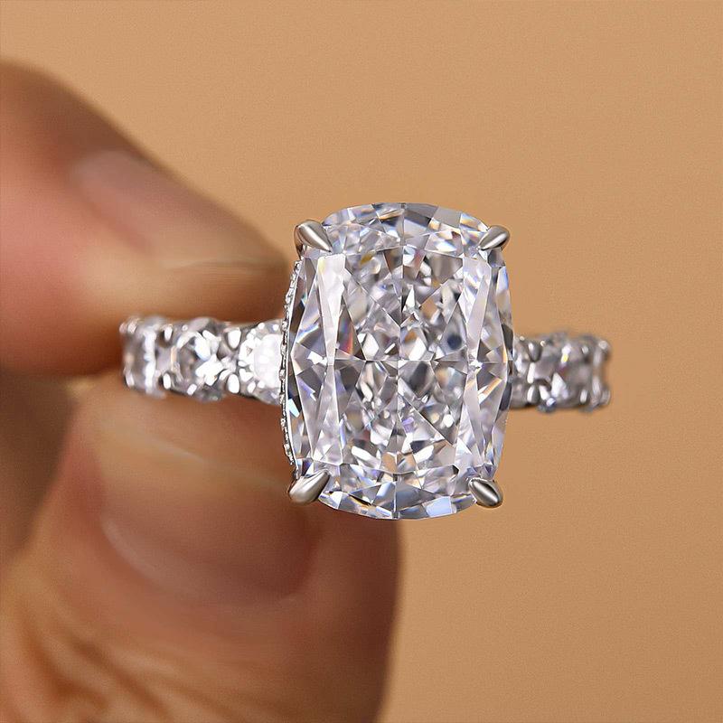 Maxine Gorgeous Elongated 9.0ct Cushion Cut Engagement Ring, a masterpiece of romance and style. This breathtaking ring features a stunning 9.0-carat elongated cushion cut center stone that sparkles with every movement. Crafted with exquisite precision, its elegant design and brilliant setting ensure it stands out as a symbol of your love. Make your special moment unforgettable with the Maxine ring, where luxury and beauty unite.