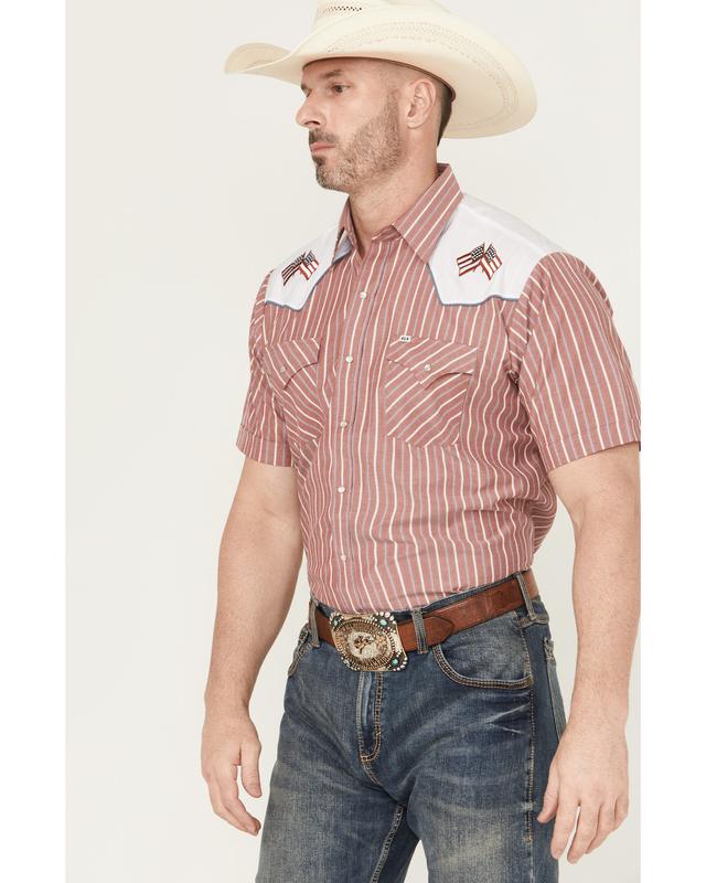 5. Ely Walker Men's Flag Yoke Striped Short Sleeve Pearl Snap Western Shirt - 2036001-Rd