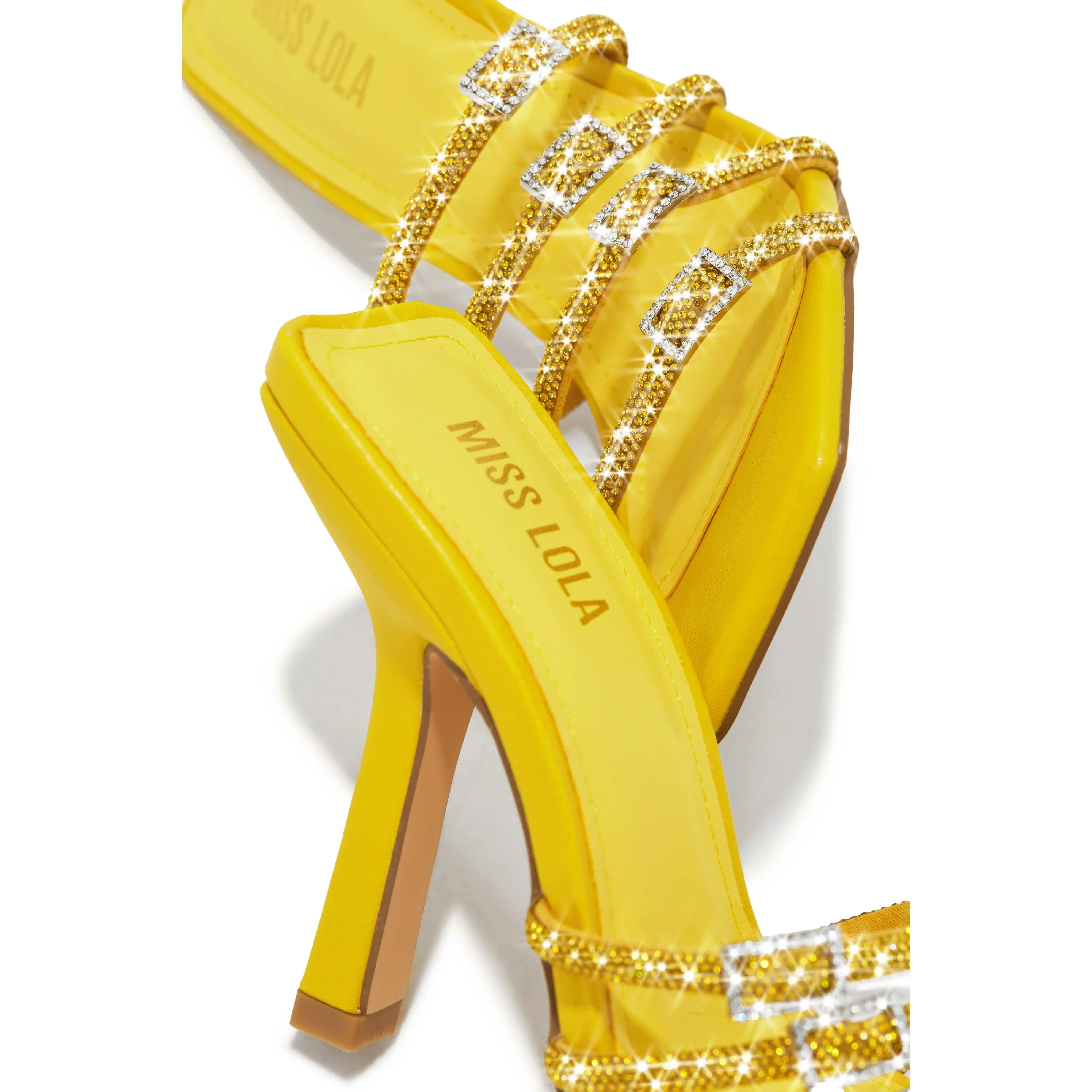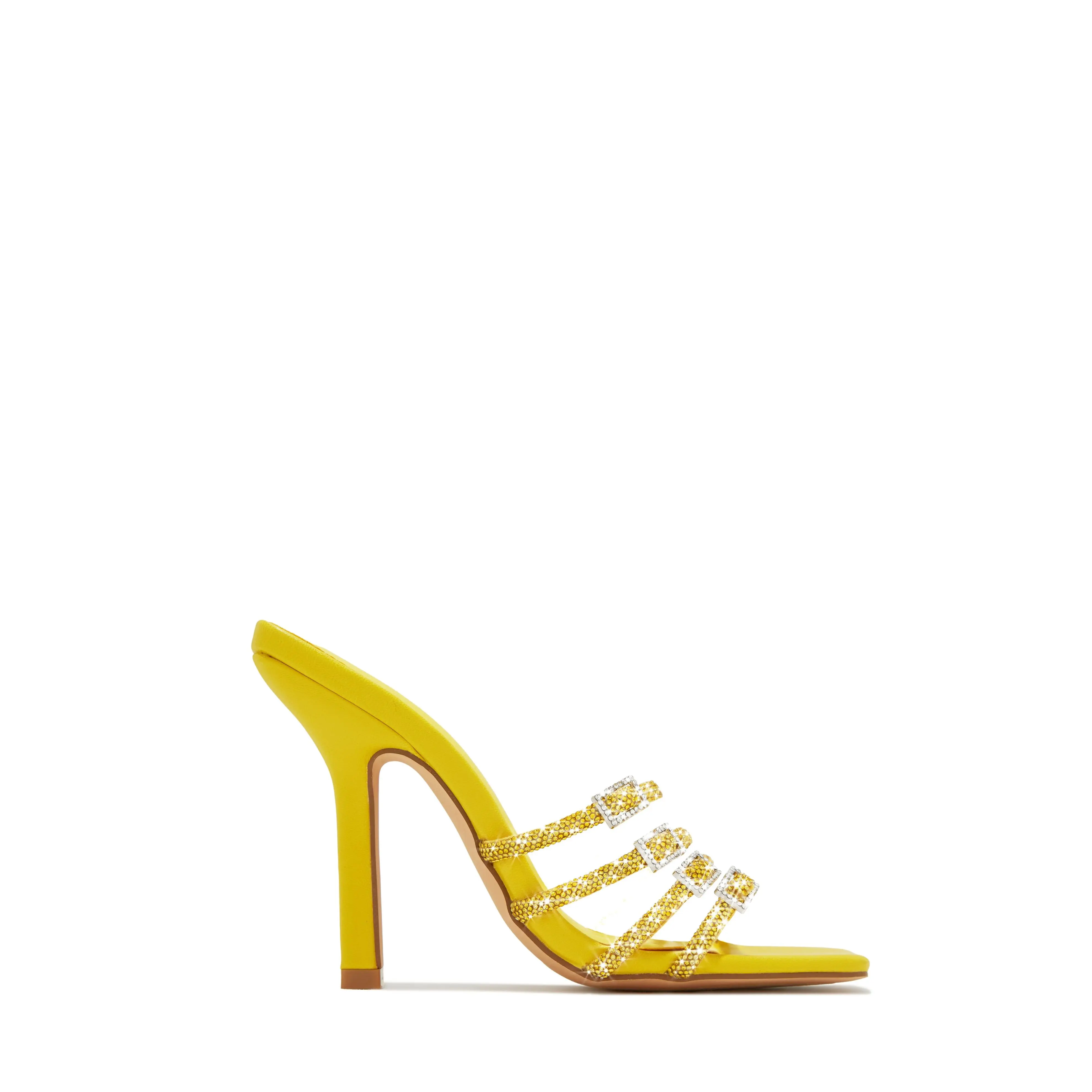 5. Champagne Taste Embellished High Heel Mules - Yellow