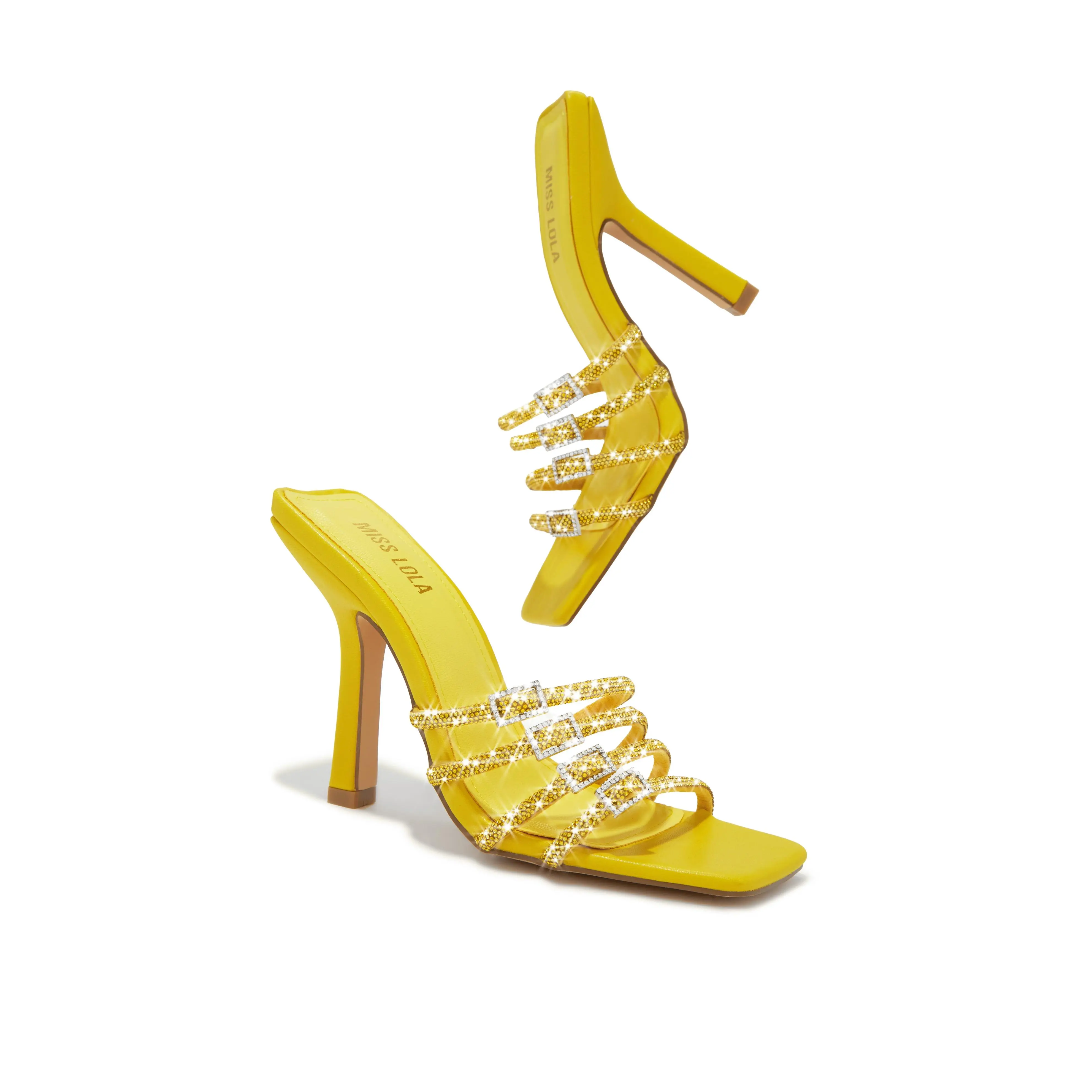 ·Yellow Embellished High Heel Mules