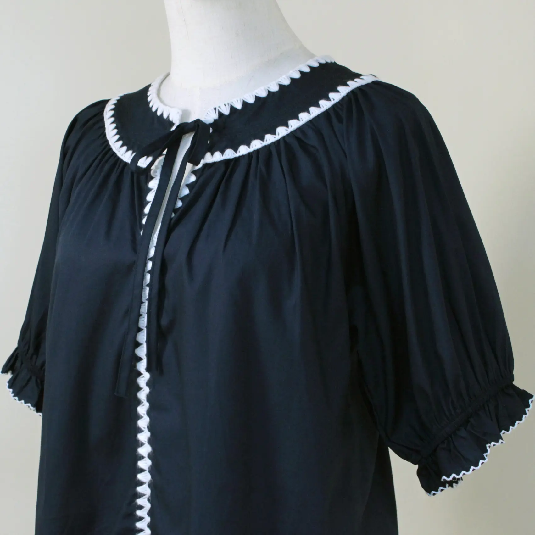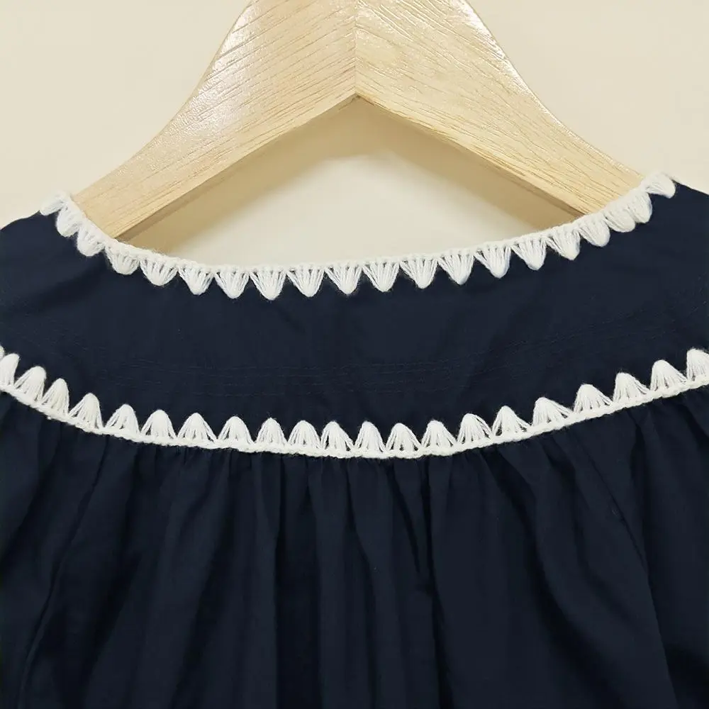 · Retro-chic appeal: The round neckline and white embroidery evoke timeless elegance.