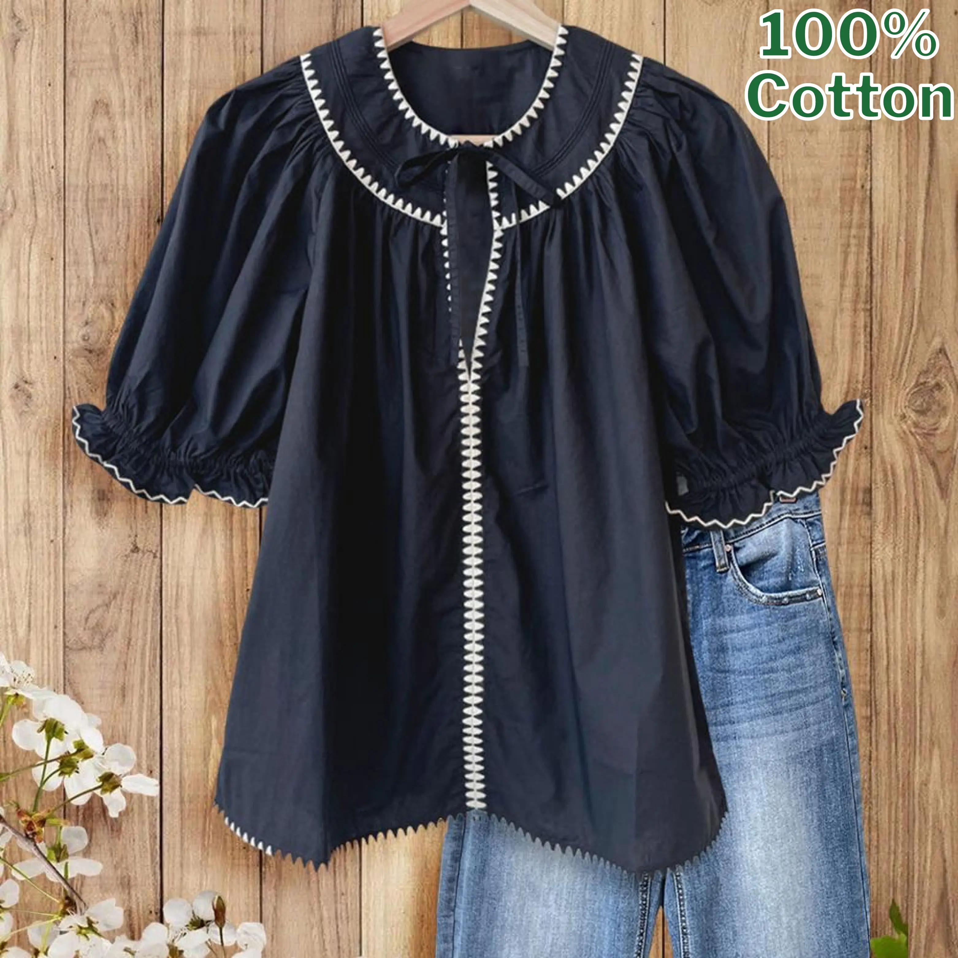 · Delicate ruffled cuffs add feminine sophistication to the short sleeves, perfect for both casual and dressy occasions.