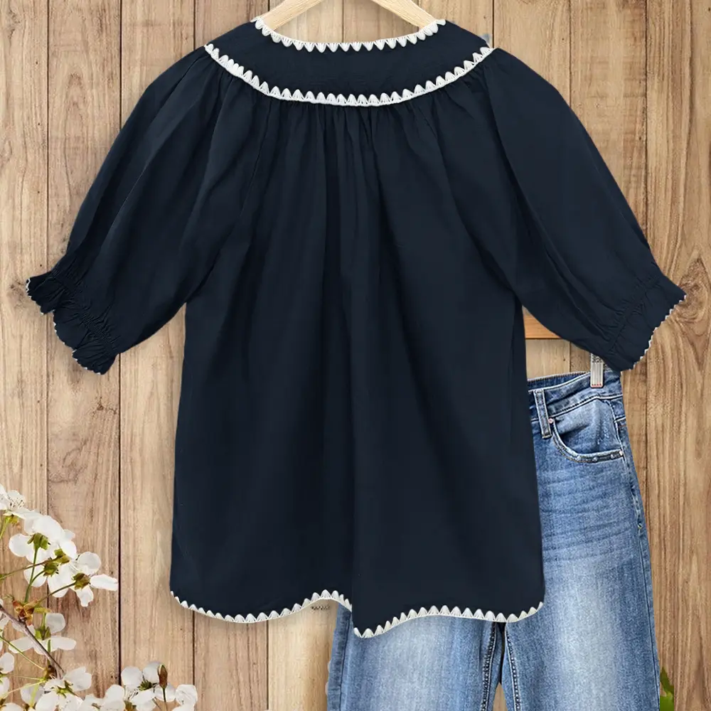 Classic Navy Blue with White Zigzag Embroidery