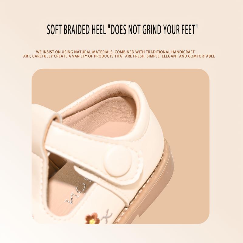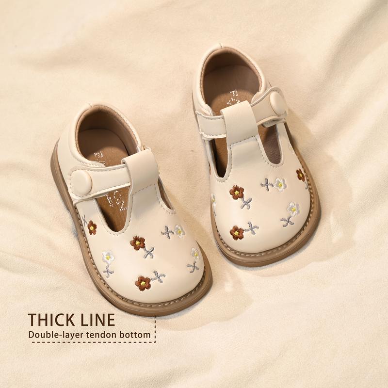 Embroidered Flower Toddler Girls' Shoes |   Soft Sole, Non-, Durable, Microfiber, Fastener, Vintage and Cute Style/