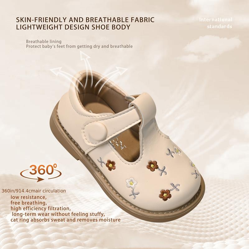 Embroidered Flower Toddler Girls' Shoes | Soft Sole, Non-, Durable, Microfiber, Fastener, Vintage and Cute Style/