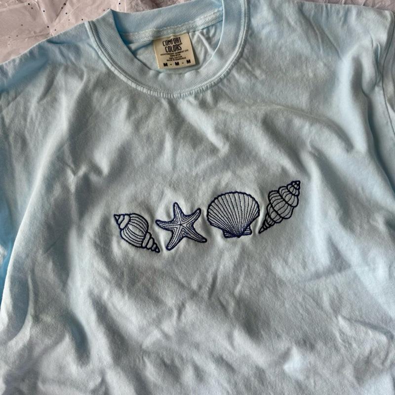 5. Embroidered Seashells Tshirt, Beach Tshirt, Summer Tshirt, Cute Embroidered Shirt, Cute Tshirts