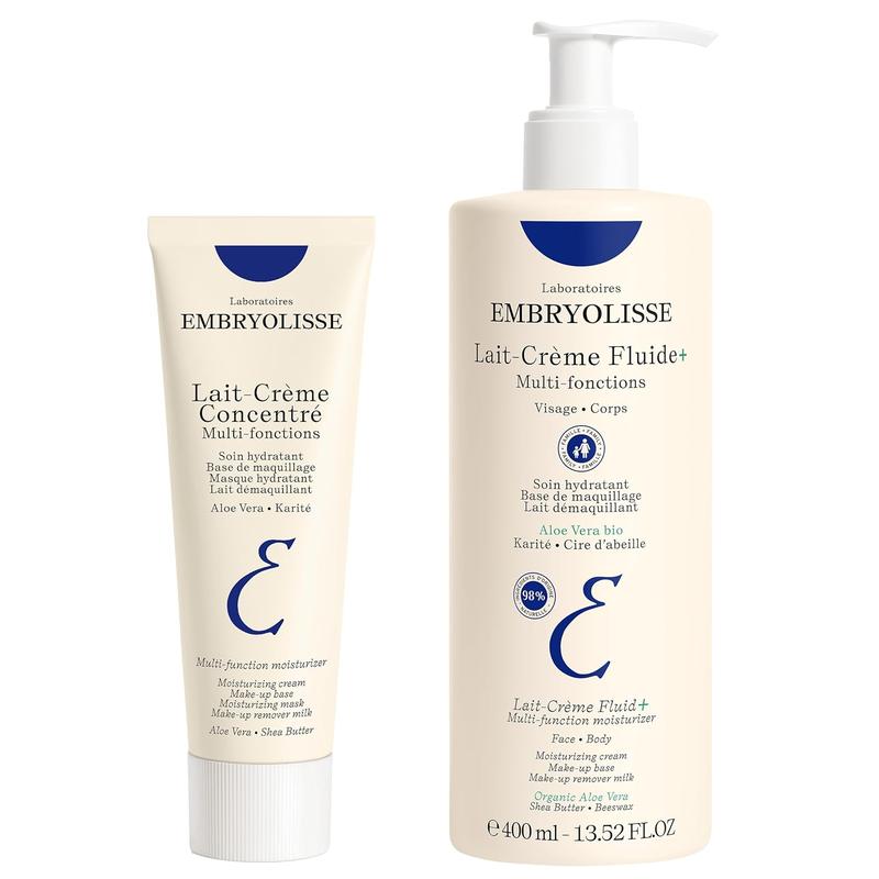 Introducing the Lait-Crème Set routine, featuring the powerful combination of the Lait-Crème Concentré (2.54 Fl.oz) and the Lait-Crème Fluid+ (13.52 Fl.oz). This bestselling skincare duo offers a multitude of benefits for your face and body.