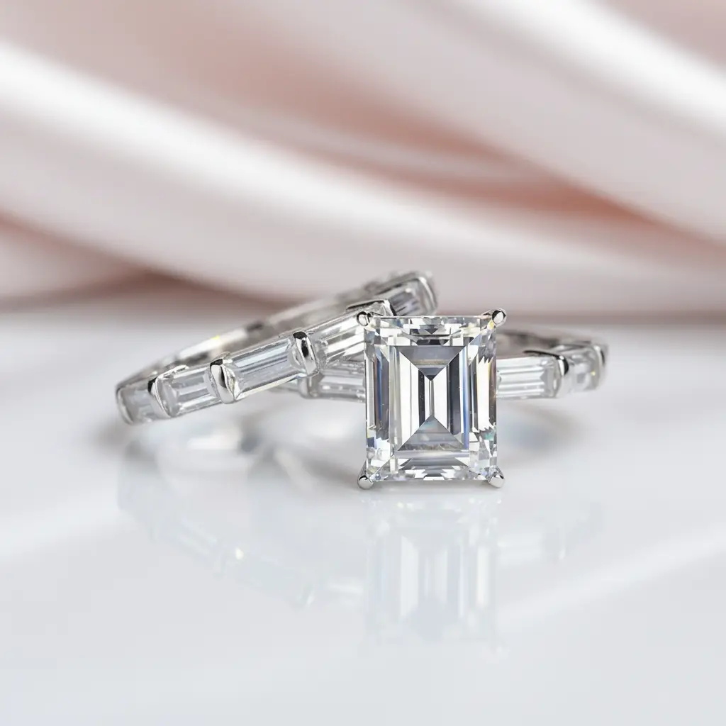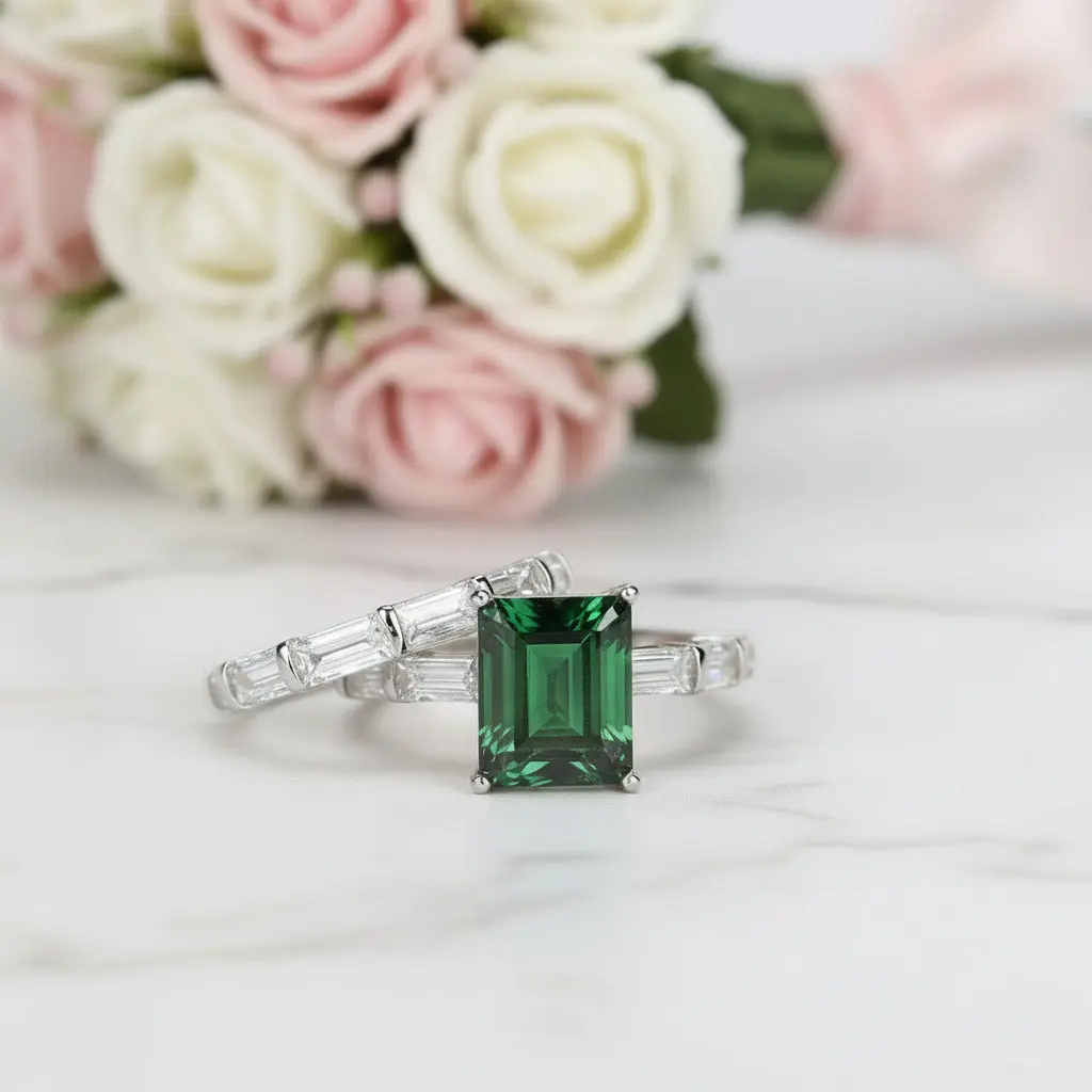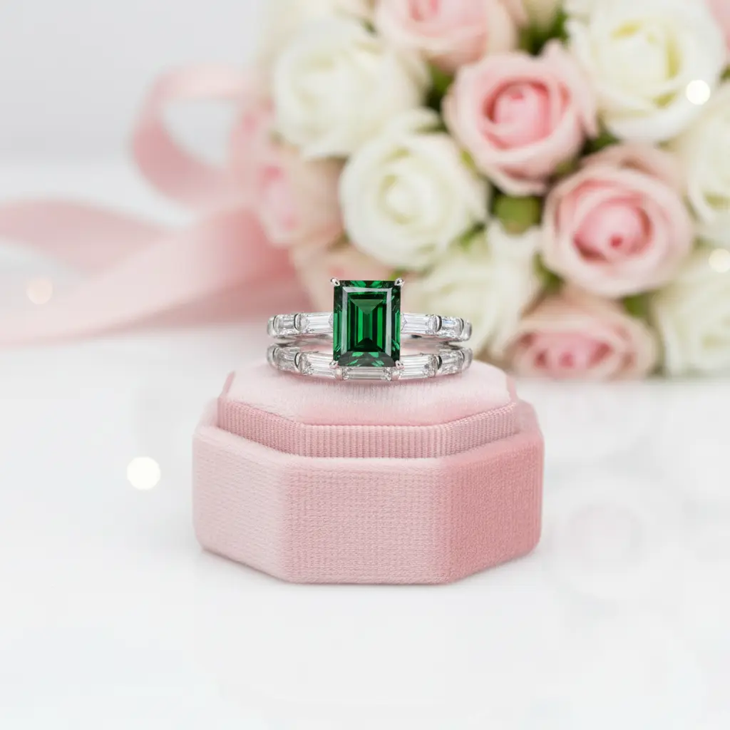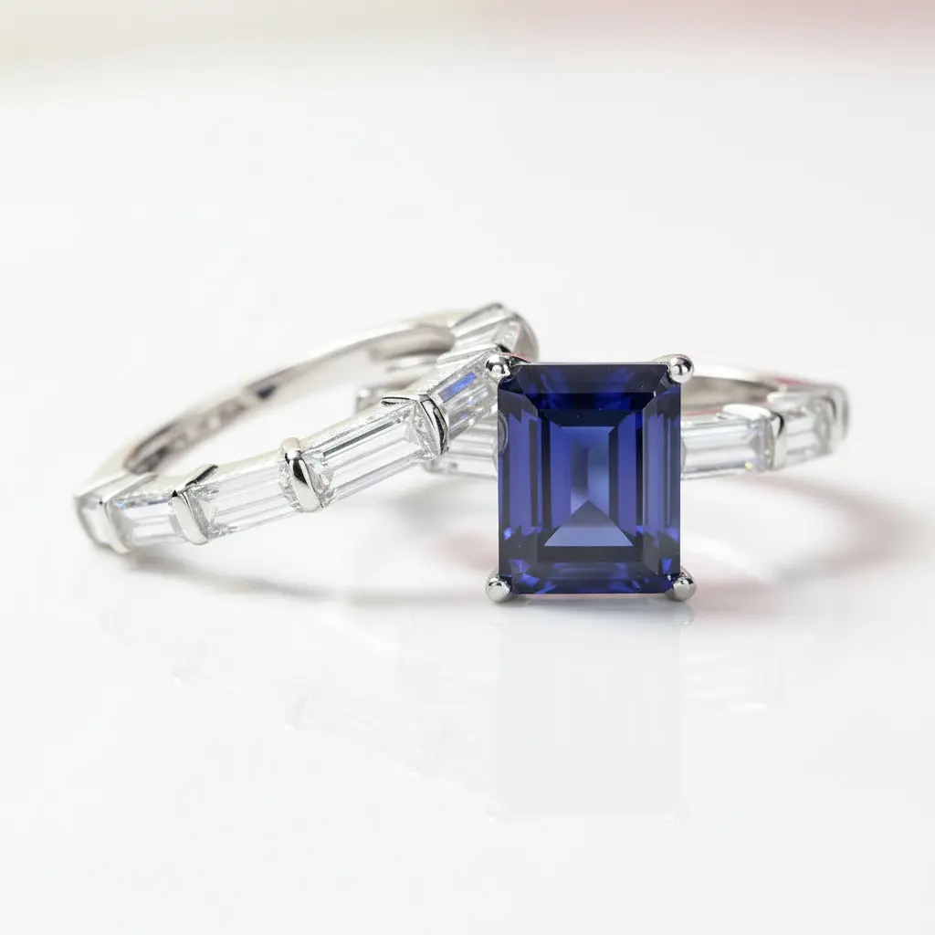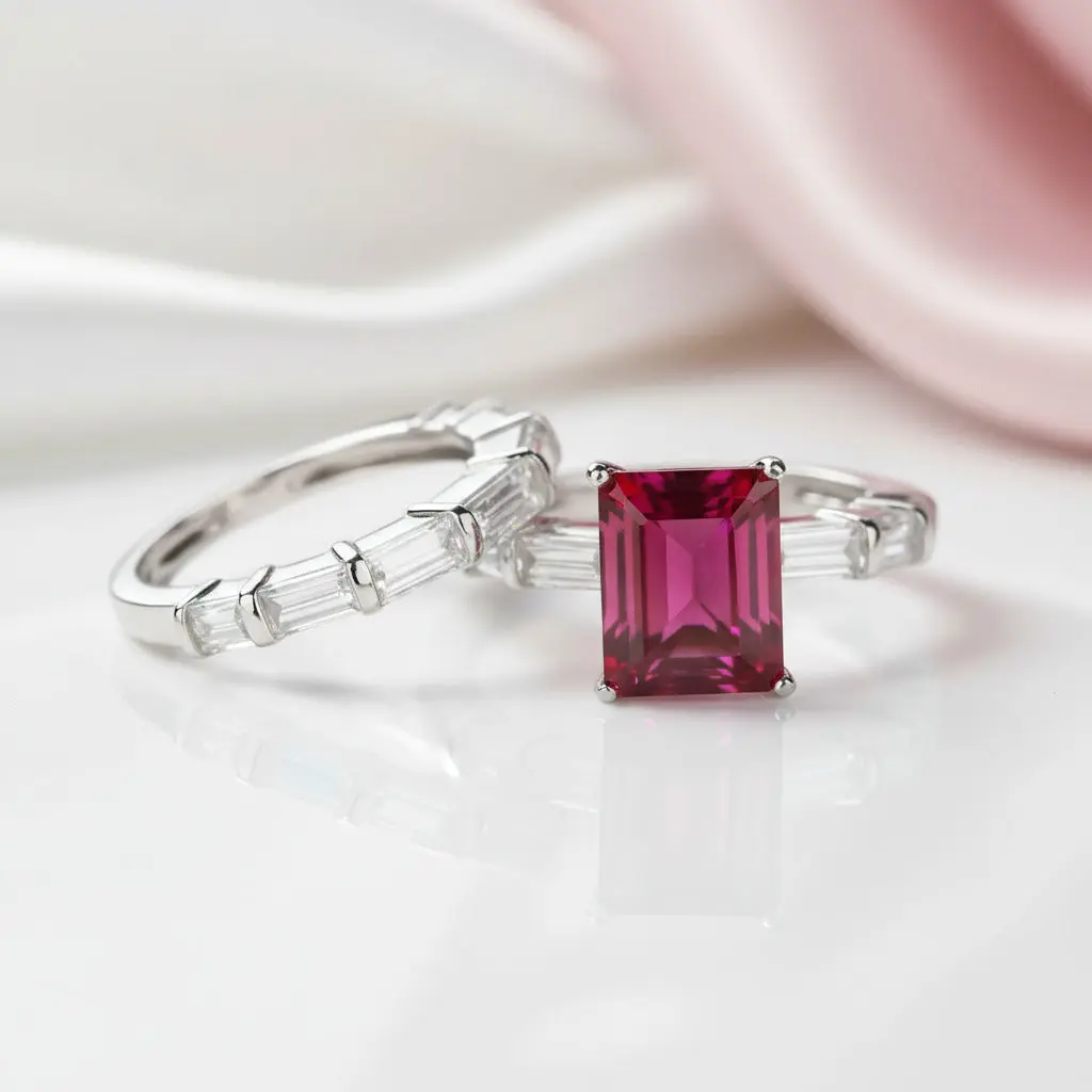 Emerald Cut Ruby Vintage Wedding Ring Set