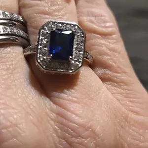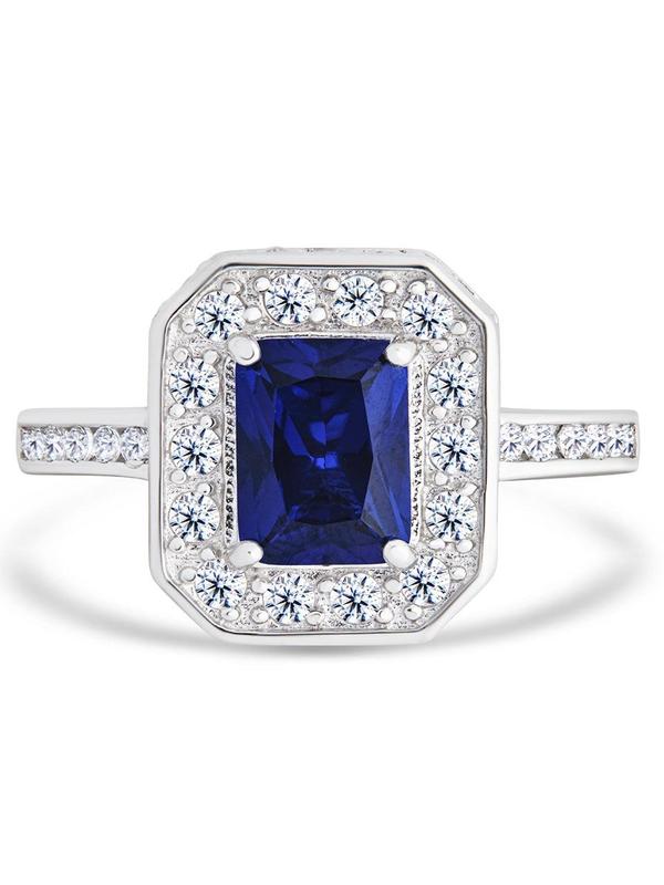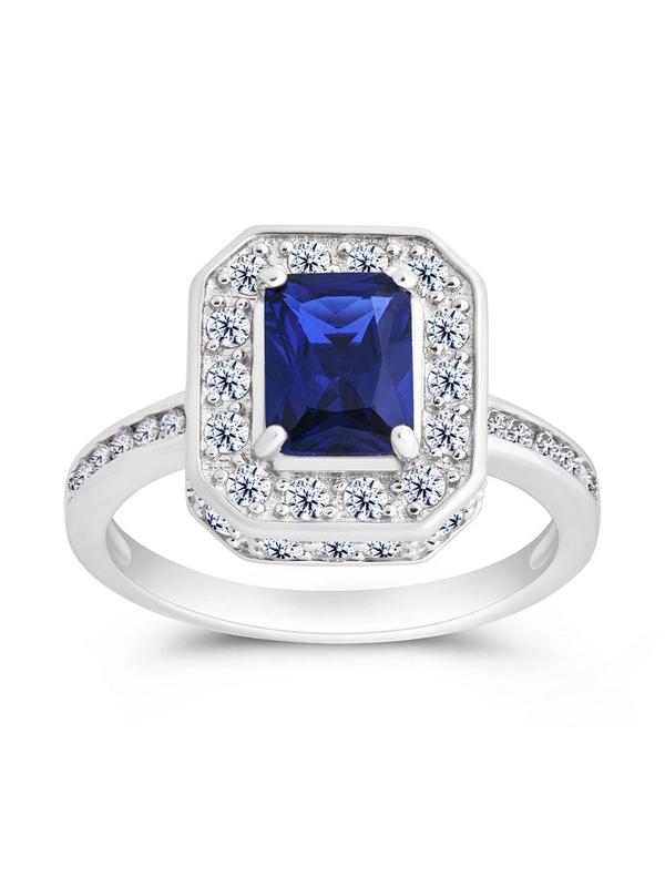 5. Sterling Silver Emerald Cut Sapphire CZ Cocktail Ring