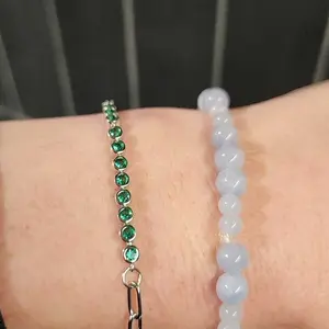 Simple and very beautiful bracelet. The green stones are small but vibrant. Love the unique design.
