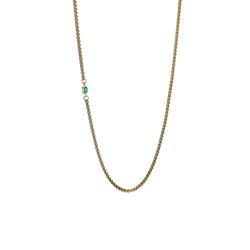 I've been looking for a yellow gold 20 inch chain but as you know real gold is very expensive. I came upon this website and saw this necklace and saw it was tarnish free and I love the little green stone on it. I received it recently and haven't taken it off. I added my own gold cross to it, I just had to open the bail with needle nose pliers and slipped it on. I love it!!
