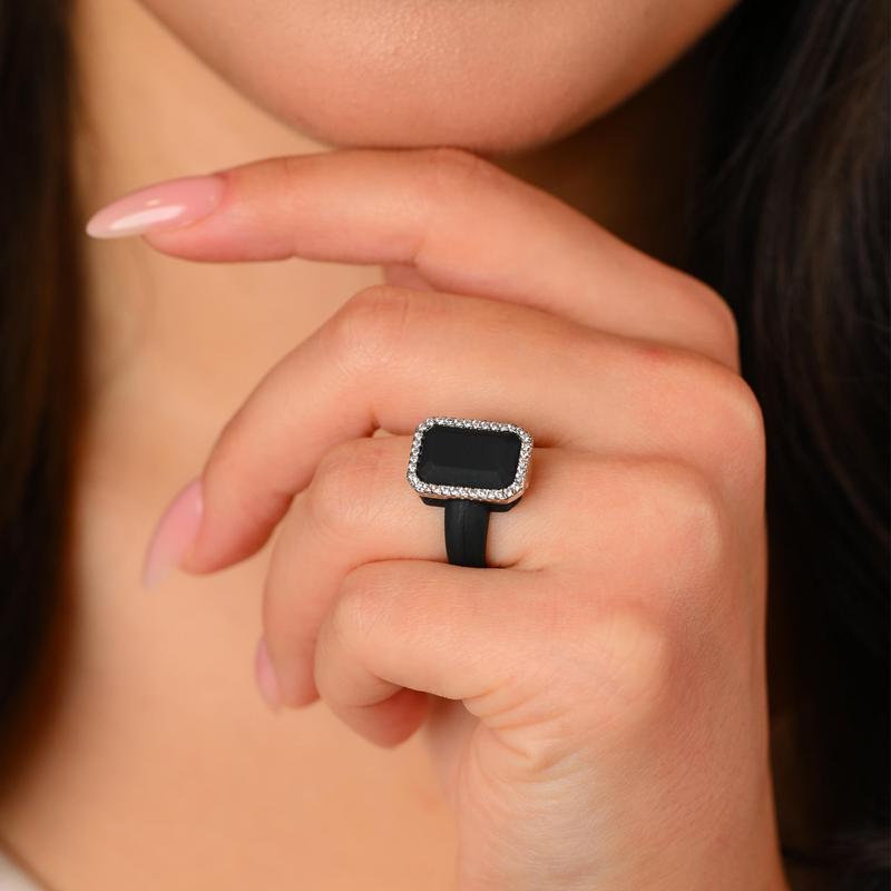 The Emerald Silicone Ring is a fusion of elegance and function, featuring a radiant emerald-cut design, CZ stone set in a polished metal frame, paired with ultra-soft, high-quality silicone for all-day comfort.