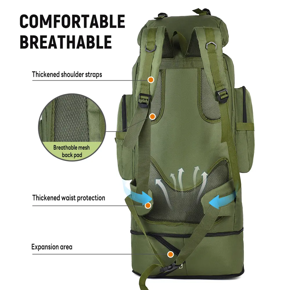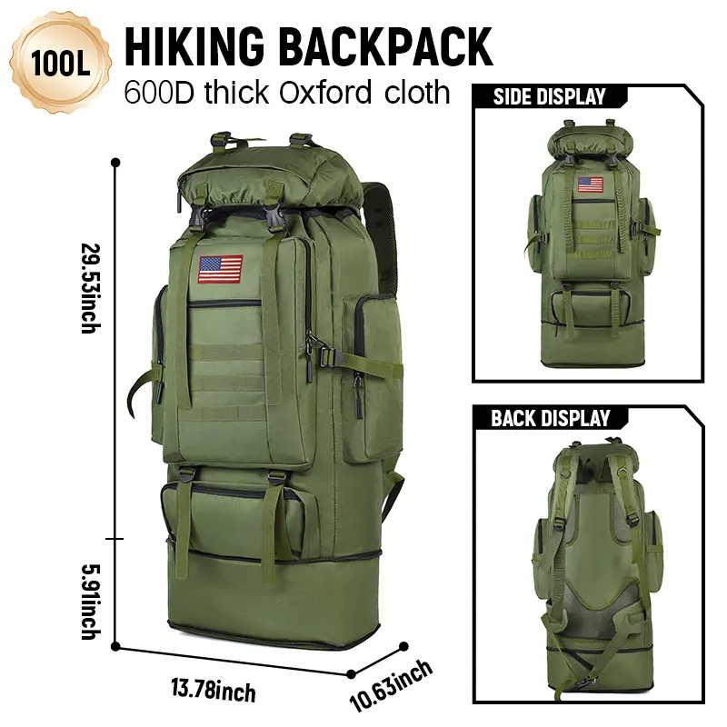 The 100-liter capacity provides ample room for essentials and equipment, making it the perfect choice for camping, hiking, and long-distance trips.