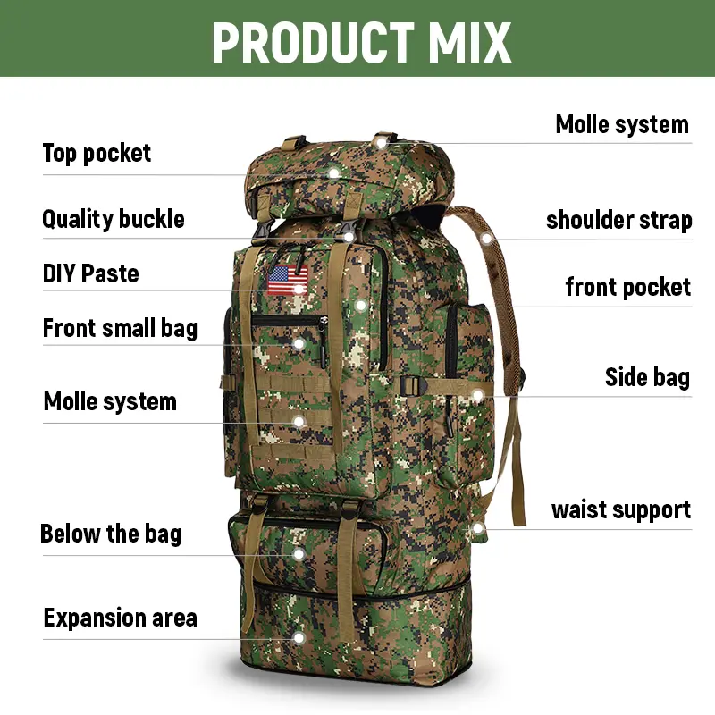 [Camouflage Pattern]: This backpack is decorated with a unique camouflage pattern, which is not only practical, but also adds a fashionable element to your outdoor gear.