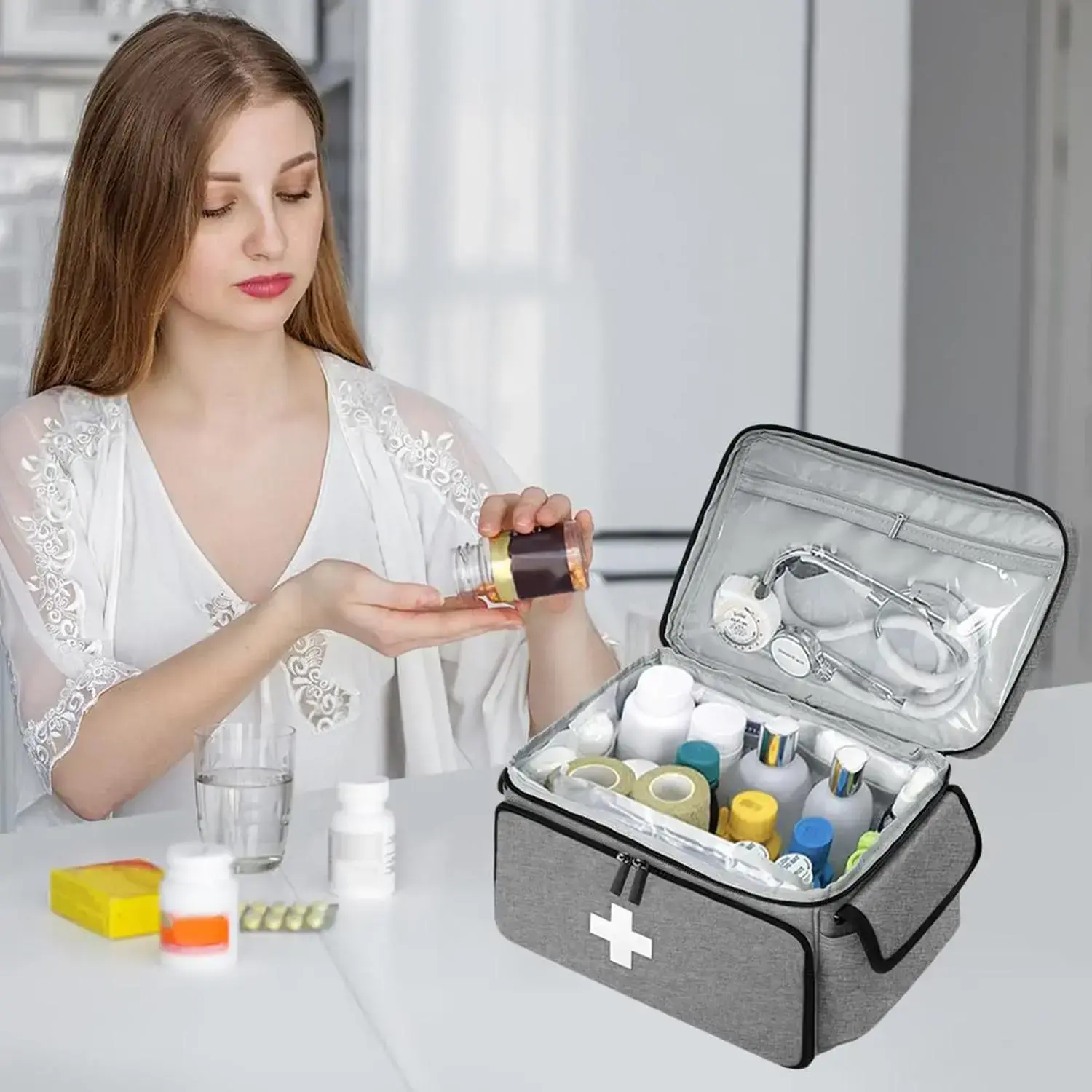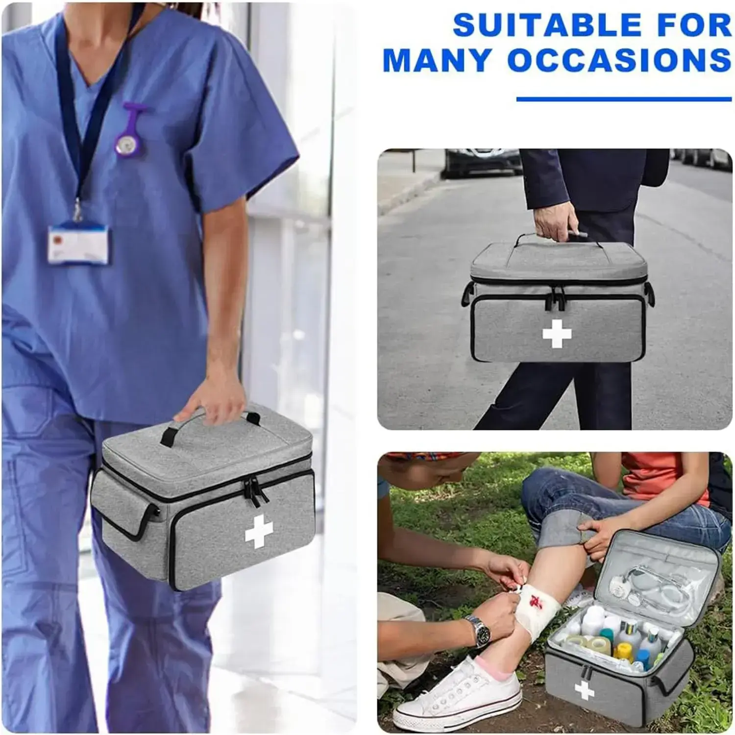 【Medical Storage Bag】: This emergency bag is designed specifically for storing essential medical supplies for home safety. 【User-Friendly】: Built with practical compartments, allowing for easy organization and quick access to medical items when needed. 【Durable Construction】: Crafted from high-quality materials, ensuring resilience and long-lasting use for all your emergency needs. 【Compact Size】: Designed to fit conveniently in most spaces, this medical bag is easy to store without taking up too much room. 【Regulatory Compliance】: Meets CA Prop 65 standards, highlighting a commitment to safety and minimizing harmful substances in the product.