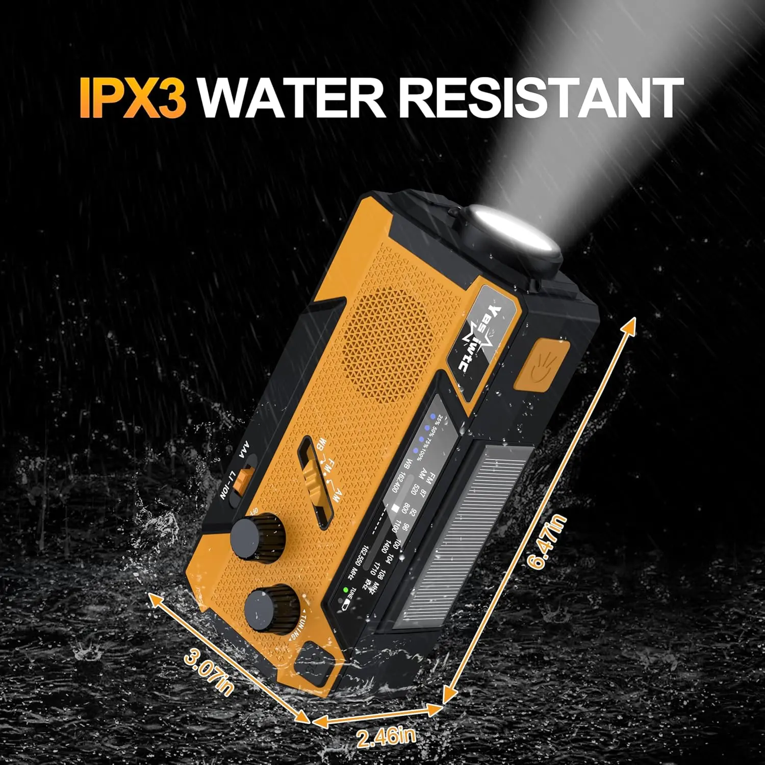 I ordered this for the solar charger crank charger and water proof looking back it looks like the orange has all that not the green besides that the product looks pretty sturdy I plan to return it if it doesn’t cost more in shipping then I paid it and order a Waterproof, solar charging and crank charging one
