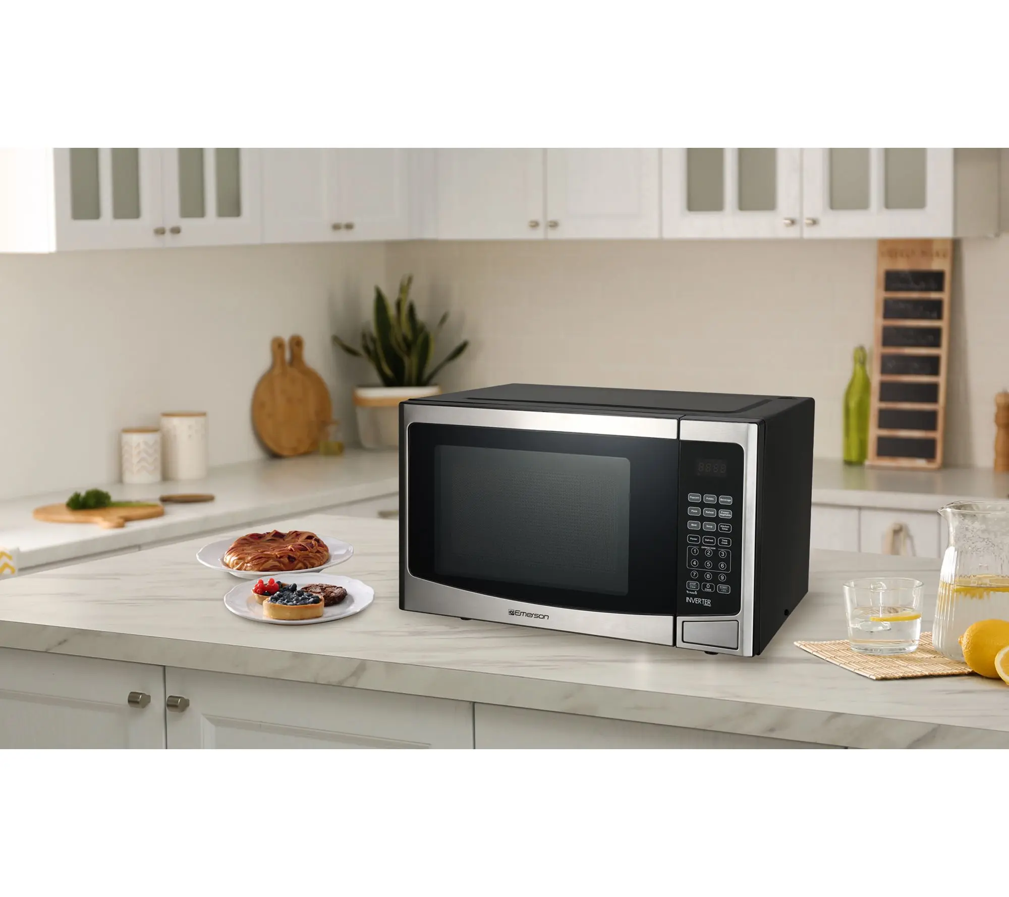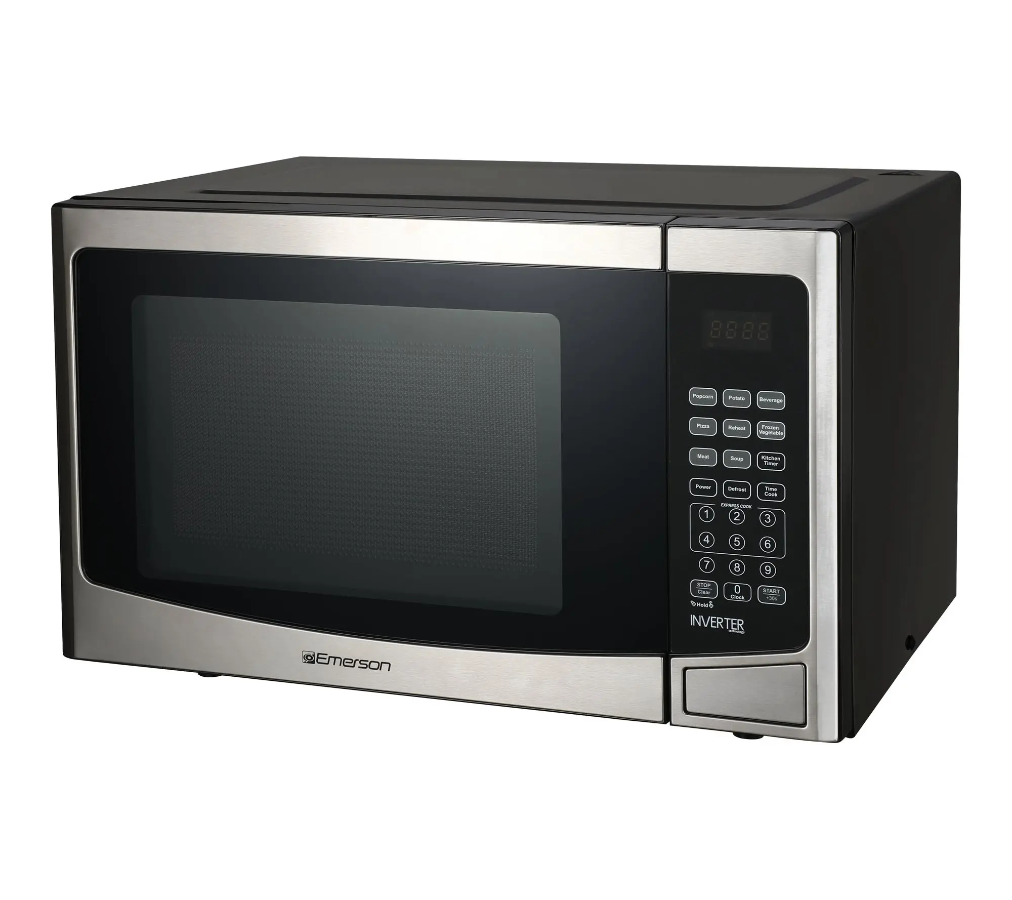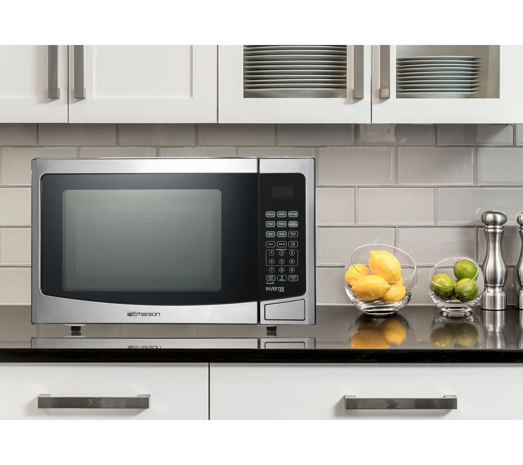 Busy weeknight dinners get a whole lot easier with this spacious 1.2-cubic-foot microwave oven, offering a streamlined way to reheat leftovers, pop up snacks, or defrost family favorites at the touch of a button. Inverter technology helps cook foods more evenly while 10 power levels and eight pre-programmed settings take the guesswork out of mealtime. From Emerson.