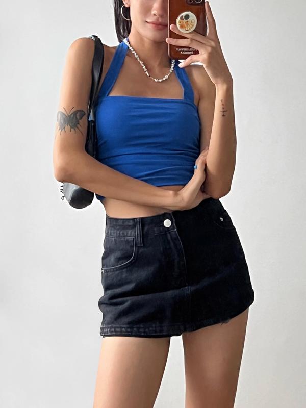 EMMIOL Vintage Blue Fit Denim Mini Jean Skirt for Women