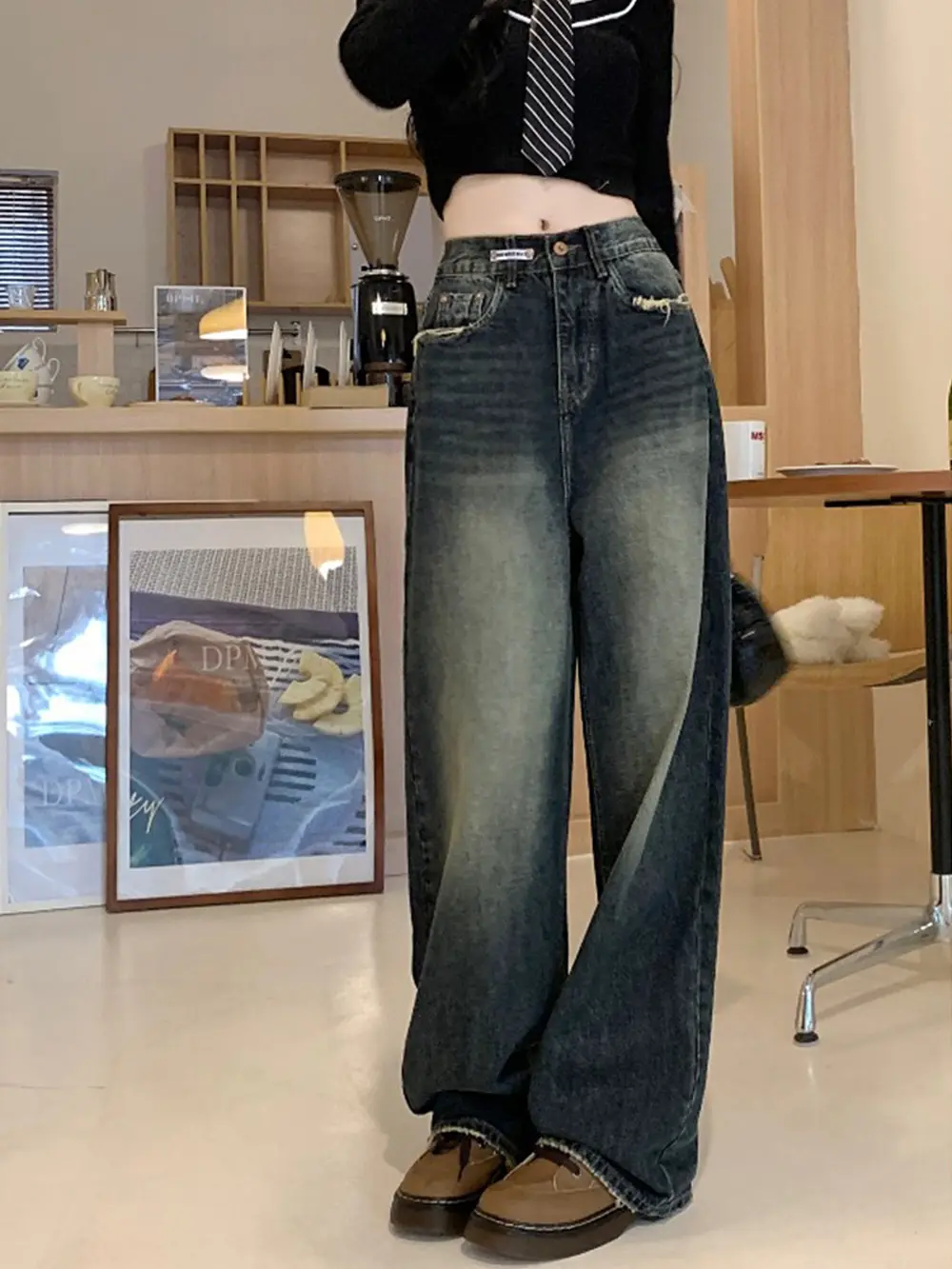 SOOOOOO CUTE!!!! its the perfect amount of baggy and 100% reccomend sizing up if you want that effect. Im 5’3 and got an L and its perfect. might drag a bit on the floor but cuffing it at the bottom is still cute and im in love!! might need a belt, waistband is stretchy but otherwise it’s perf w/o!!