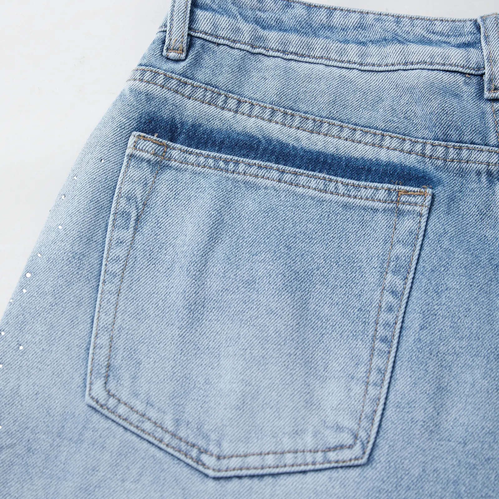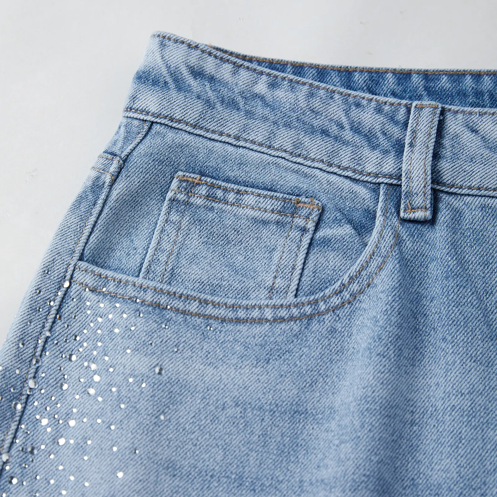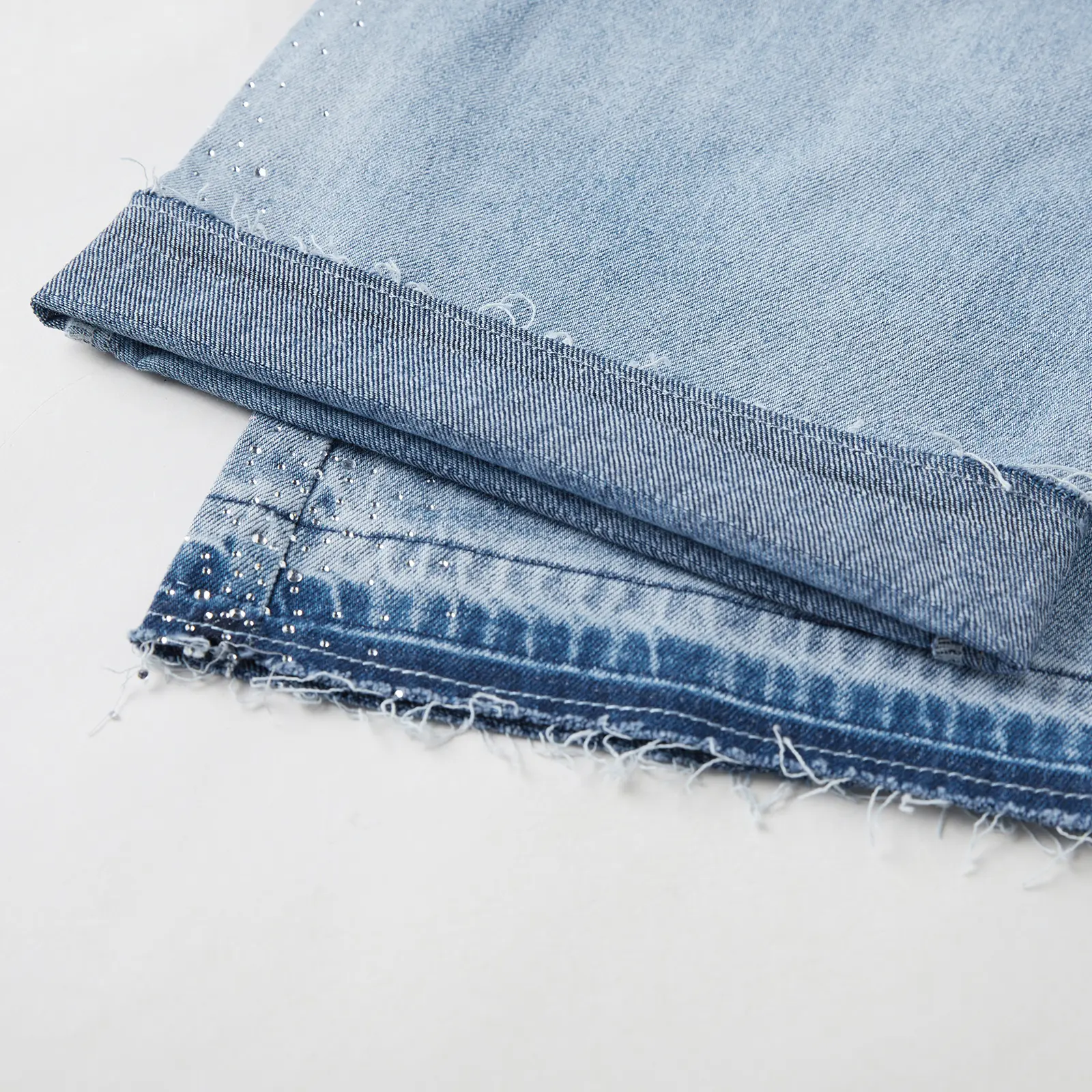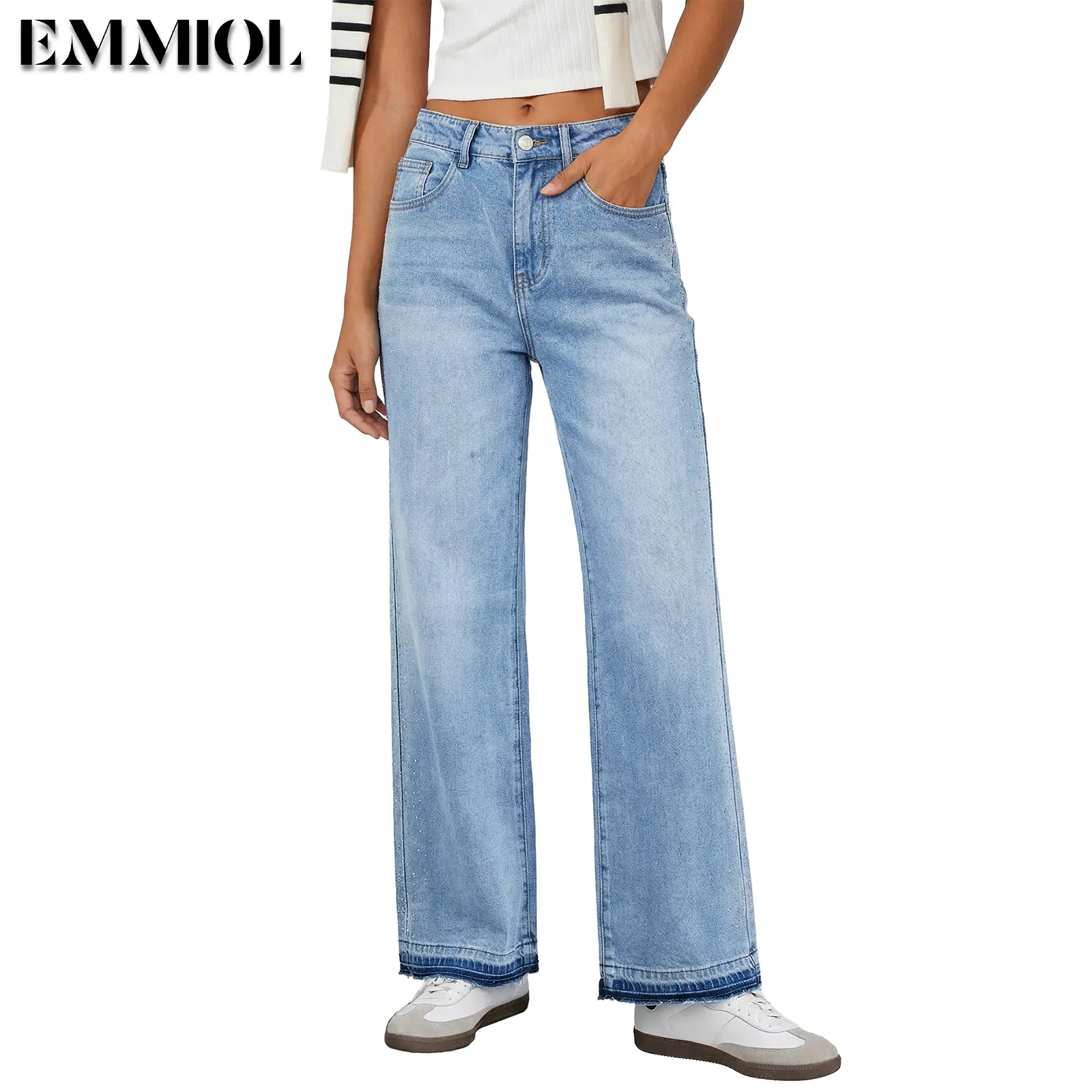 Design: Sparkly bling decor on pant sides adds unique charm, paired with raw hem at cuffs for casual vibe. Front and back pockets are functional, holding small items like phones or keys easily. It combines denim pants practicality with bling style