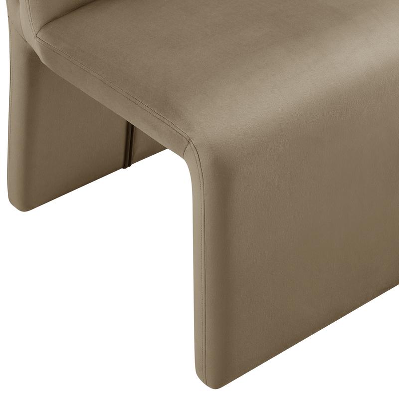 With its smooth curves and continuous form, the Emory Armless Dining Chair brings an elegant, contemporary feel to any space. Wrapped entirely in soft performance velvet fabric, this single slipper dining chair features a tall, gently angled backrest that provides support while maintaining a clean, minimal profile. The padded seat flows into the base with a waterfall edge that adds both comfort and balance. Its armless shape and crisp lines make it easy to style around a dining table or as a padded bedroom chair, or living room accent chair. Built with a sturdy internal wooden frame and finished with non-marking foot pins, Emory arrives fully assembled and supports up to 300 lbs.