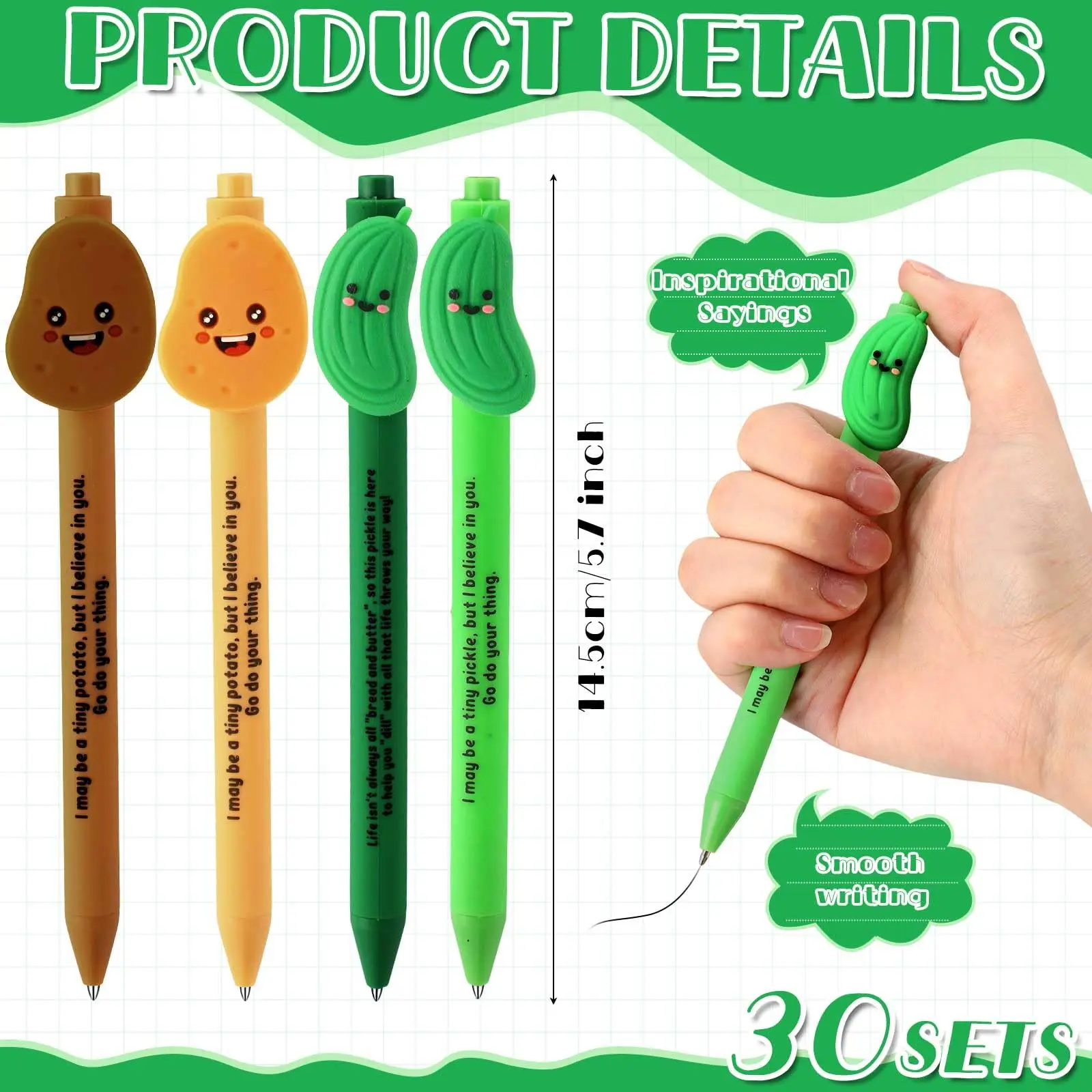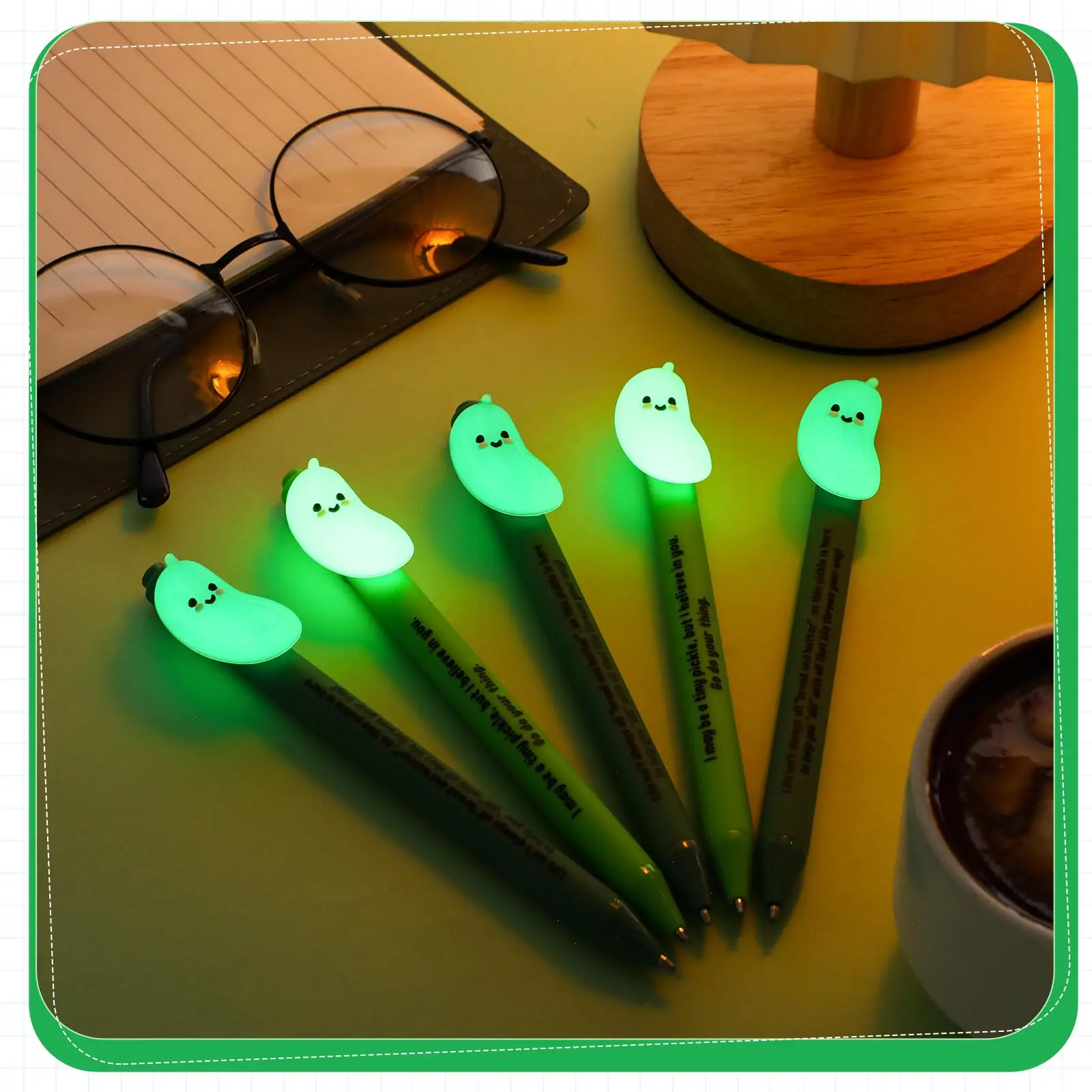·Luminous Positive Pickle Gifts: the gift set includes 30 pieces of pickle pens bulk with luminous designs; These colors make their designs more eye catching; You will have a large amount for personal use or for sharing with friends