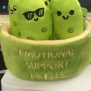 I absolutely love my emotional support pickle plush. It’s cute, silly, and surprisingly comforting. When I’m stressed, I squeeze it and it genuinely makes me smile. Such a small little joy every day!