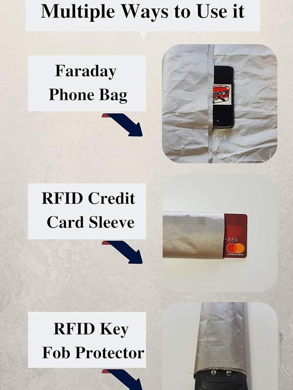 ·Works exactly like a Faraday Cage – made from powerful EMP-shielding materials: 23% copper + 27% nickel and 50% polyester to isolate what you put inside the cloth.