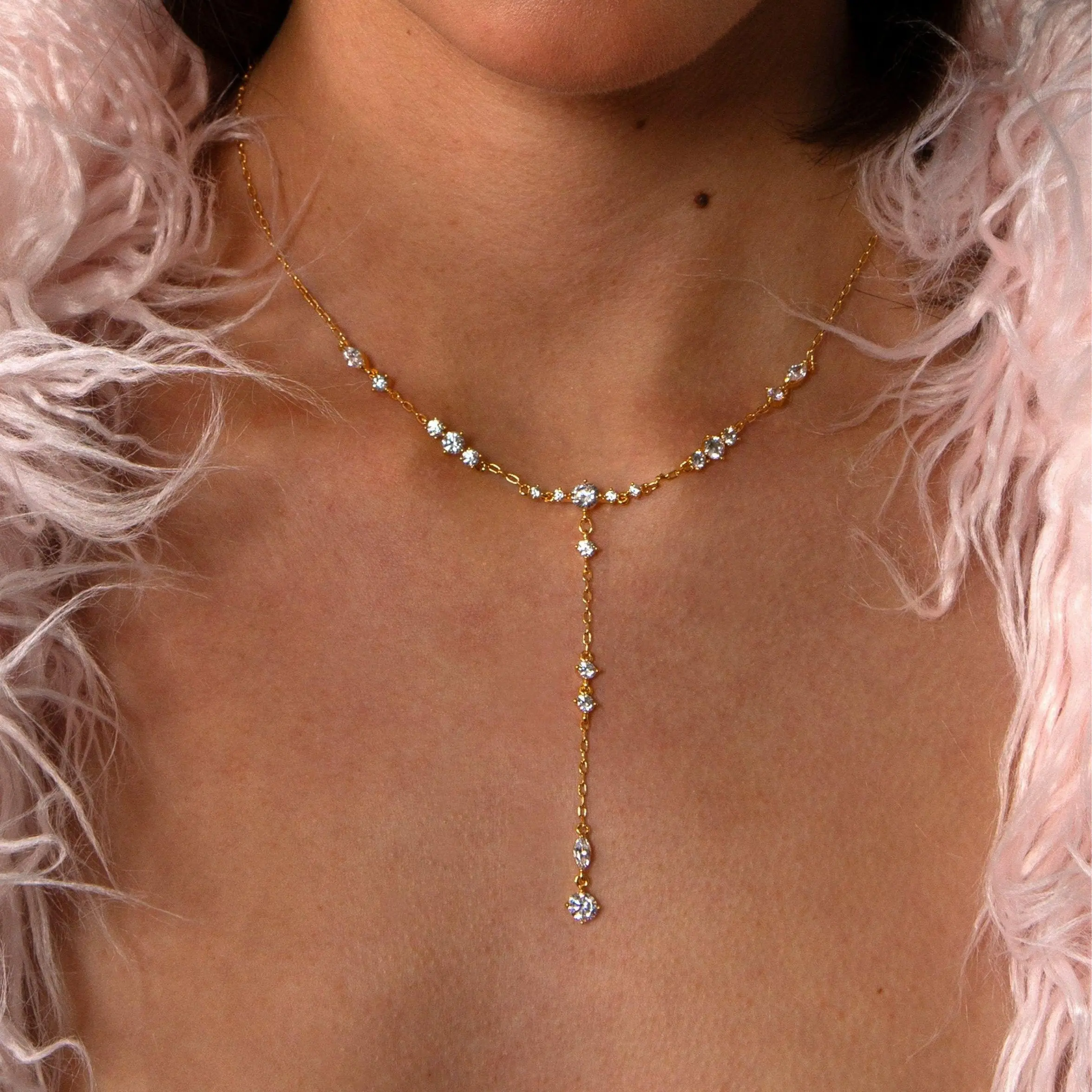 en route Adriana Necklace in Gold, Sparkling Lariat-inspired Jewelry for Daily Wear, Versatile Piece Essential Designed for Layered Styling & Modern Outfits