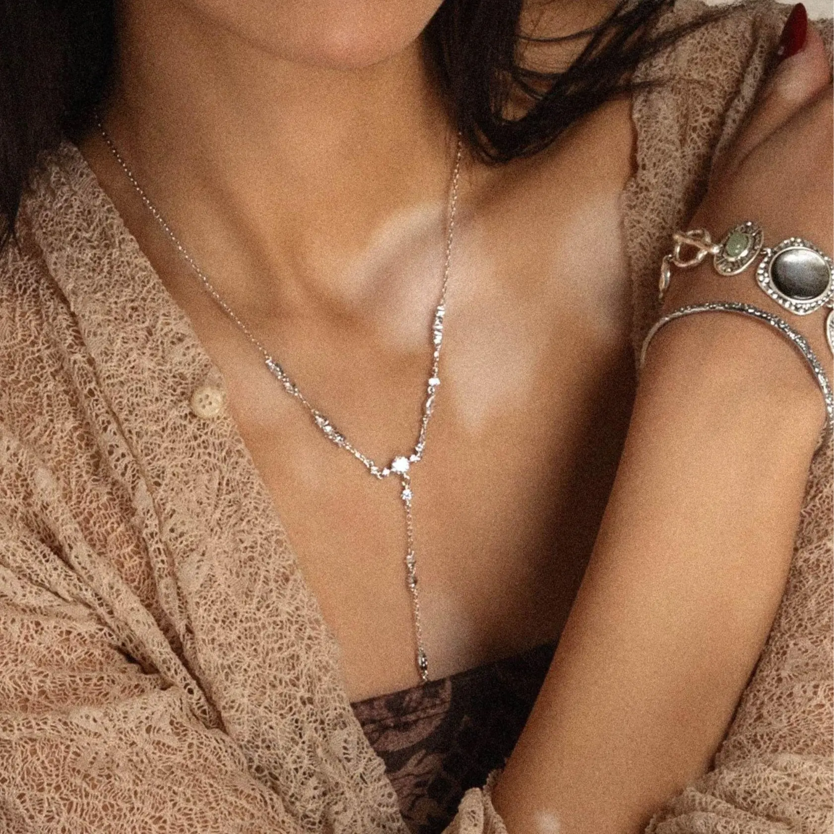 en route Adriana Necklace in Silver, Minimalist Lariat-style Jewelry with Sparkle Accent, Everyday Piece Designed For Layering & Versatile Chic Looksen route Adriana Necklace in Silver, Minimalist Lariat-style Jewelry with Sparkle Accent, Everyday Piece Designed For Layering & Versatile Chic Looks