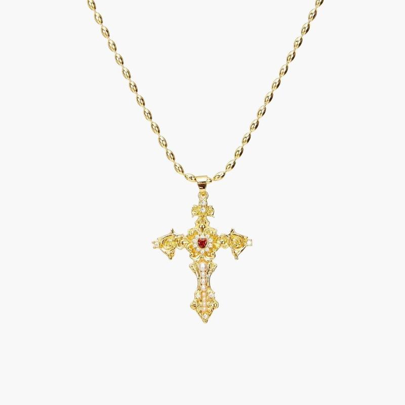 en route Gold Aphrodite’s Song Necklace, Statement Cross Pendant with Goddess-Inspired Design, Perfect for Layered Styling & Coordinated Sets