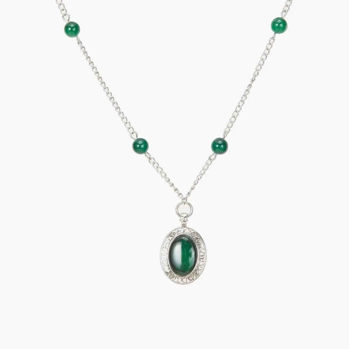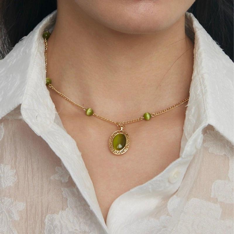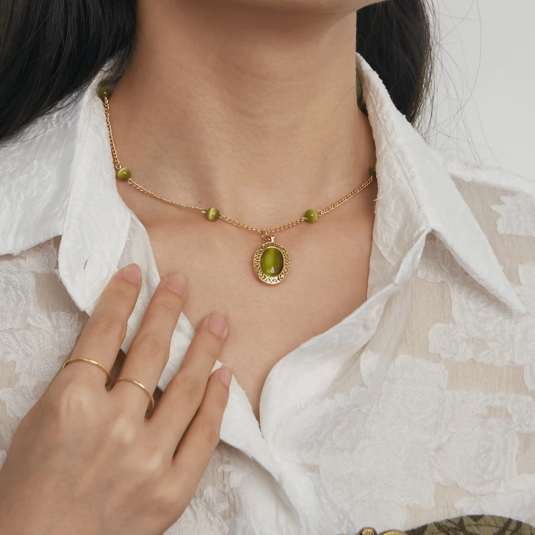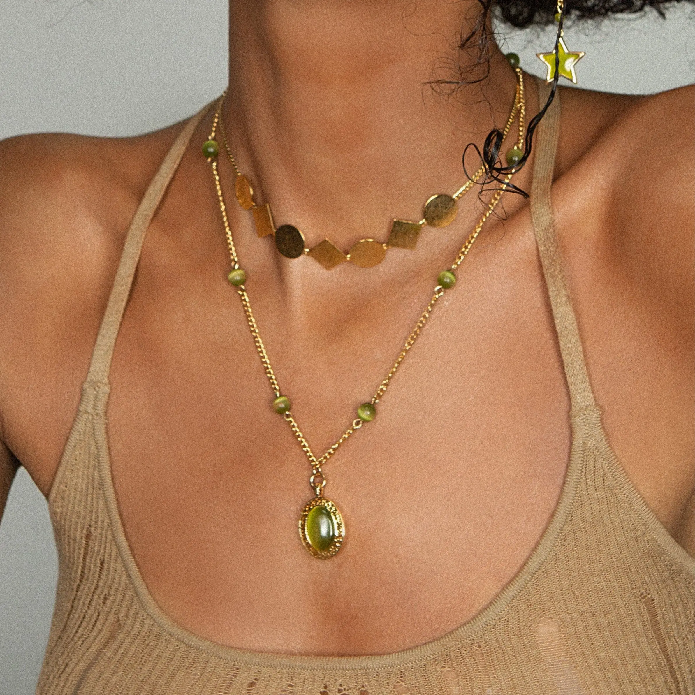 en route Gold Linh Necklace, Gold Chain with Green Stone Accents and Oval Pendant, Perfect for Chic Everyday Stylingen route Gold Linh Necklace, Gold Chain with Green Stone Accents and Oval Pendant, Perfect for Chic Everyday Styling