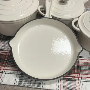 Love it!! I got the red my only complaint is that the skillet is not deep enough but overall beautiful set!! Heavy good quality 👌