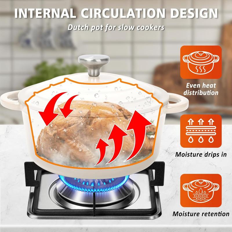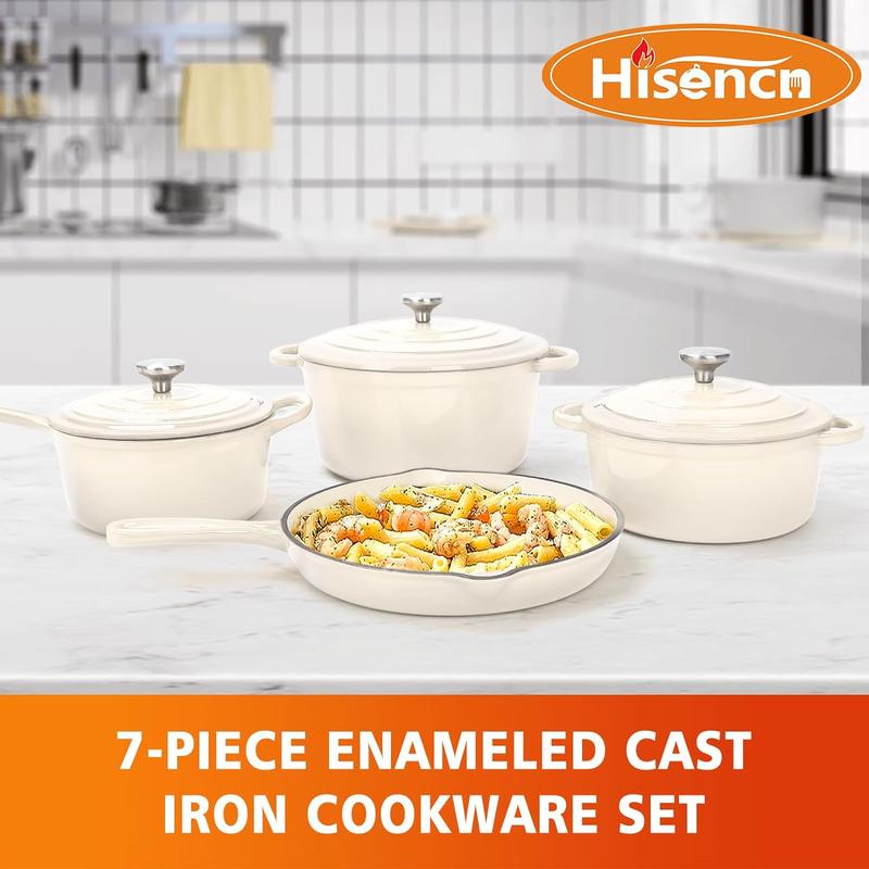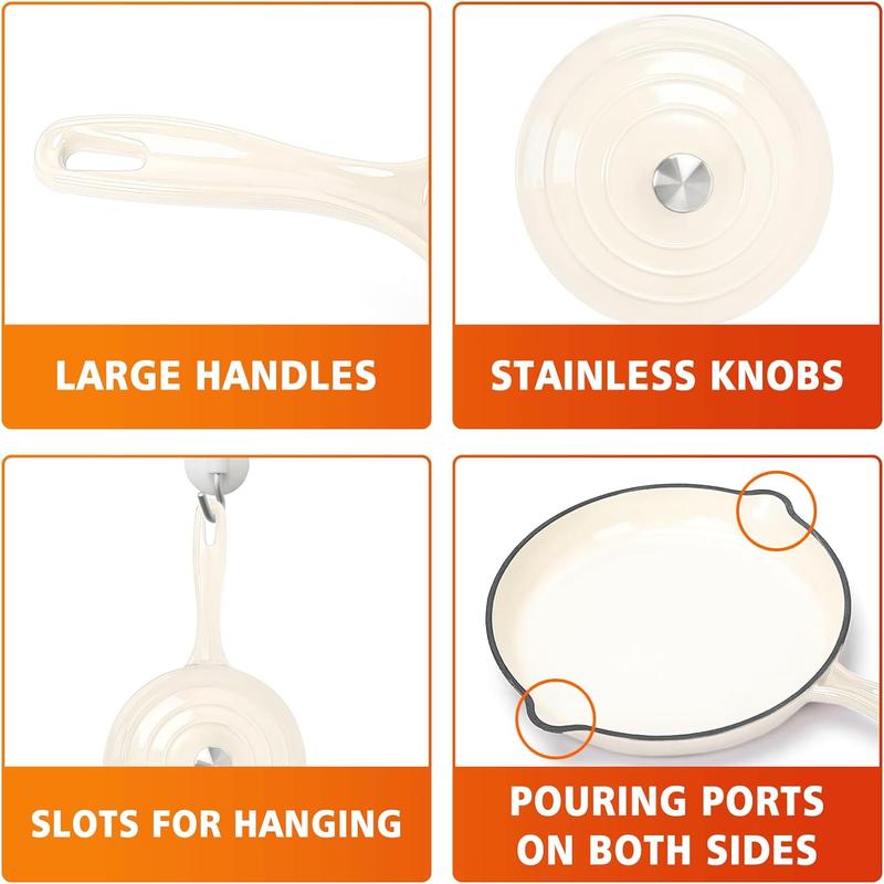 Elf Grill 7-Pc Enameled Cast Iron Set - 2 Dutch Ovens, Skillet & Pan with 3 Lids, Ceramic Nonstick, PFOA-Free, Gas/Induction/Oven Safe to 500°F, Cream White for Baking & Casseroles, Modern Kitchenware - Pots