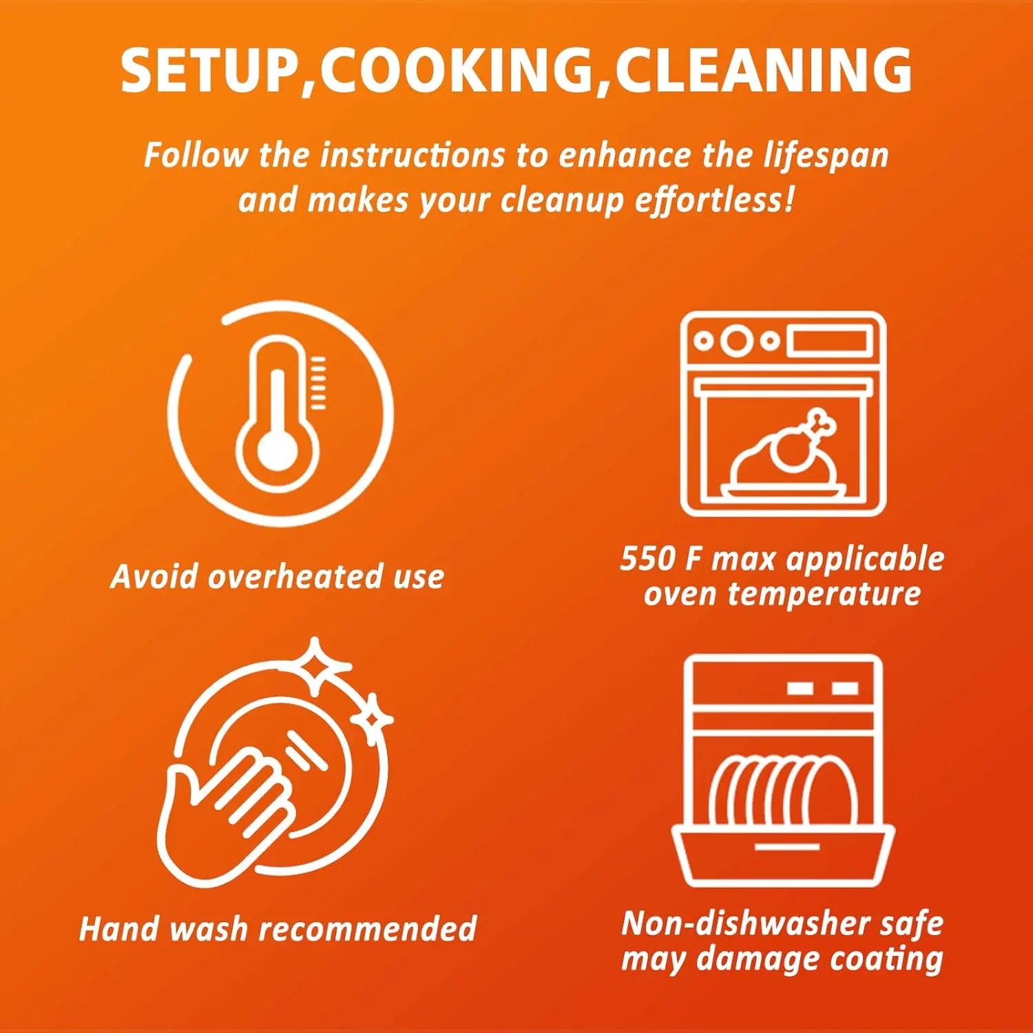 Wash with warm, soapy water and a non-abrasive sponge or dishcloth to keep the pan looking new! Avoid using the dishwasher.