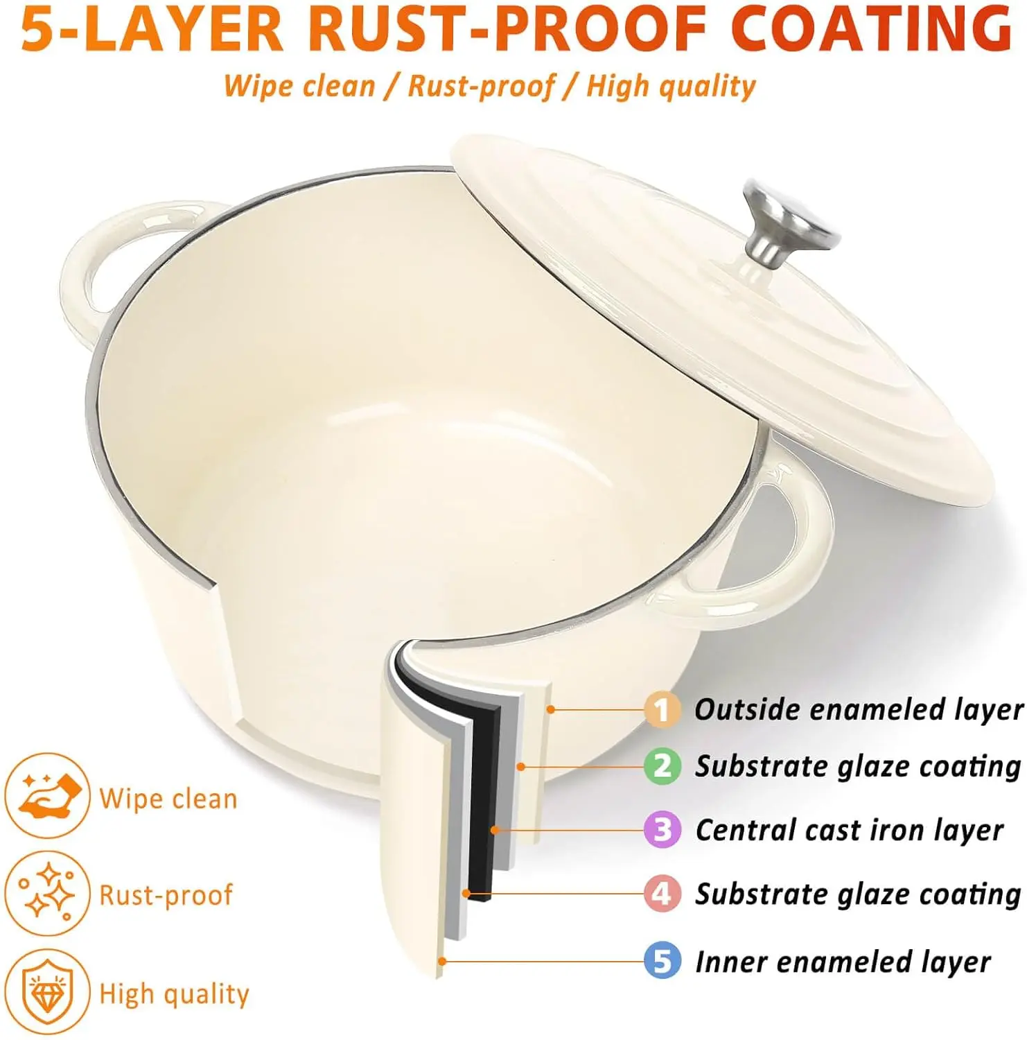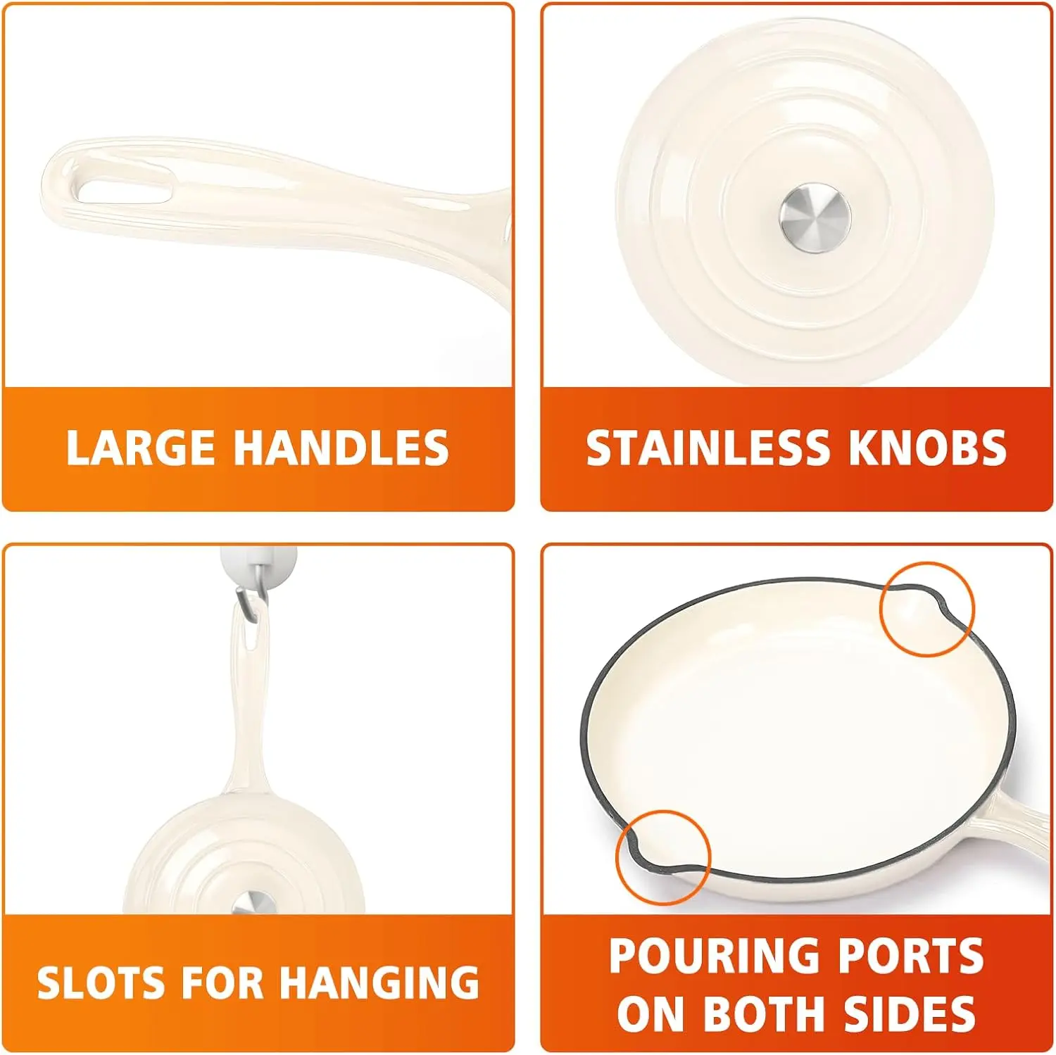 Uniflasy 7-Piece Enameled Cast Iron Cookware Set - Dutch Oven, Sauce Pan & Skillet with 3 Lids, Heavy Duty PFOA-Free Ceramic Coated, Gas/Induction/Oven Safe
