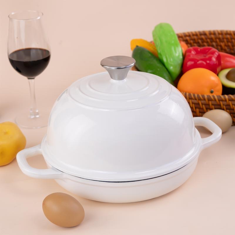 High quality materials: Our bread baking tray is made of high-quality cast iron, ensuring excellent durability and long-lasting performance. Its sturdy structure provides excellent insulation, which is crucial for perfect baking! Enamel coating: The enamel surface of the Dutch pot can resist various dough and food reactions, is rust proof, acid resistant, can withstand temperatures up to 500 ° F, and is easy to clean, keeping your pot as new for many years. The smooth enamel surface makes washing easy! Ideal Bread Baking Choice: Designed to evenly distribute heat, our enamel bread baking tray comes with a steam collection cover that keeps the bread moist and golden every time!