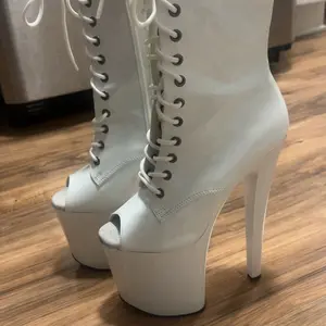 Really nice for climbing the pole. Love the slanted edges on the front and heel, gives almost a mermaid vibe to them. The area between the heel and upper looks unfinished in some areas, but maybe because of the color.