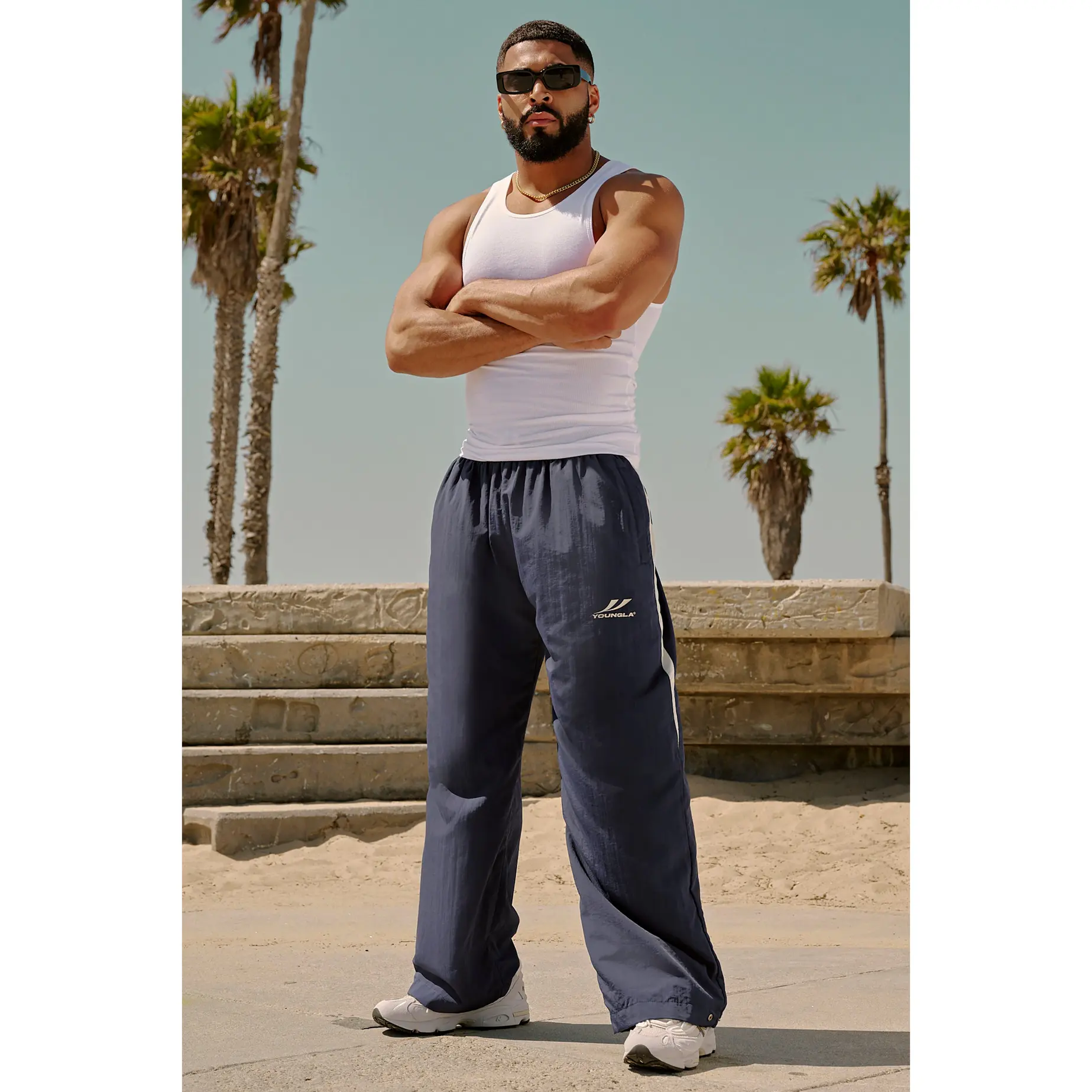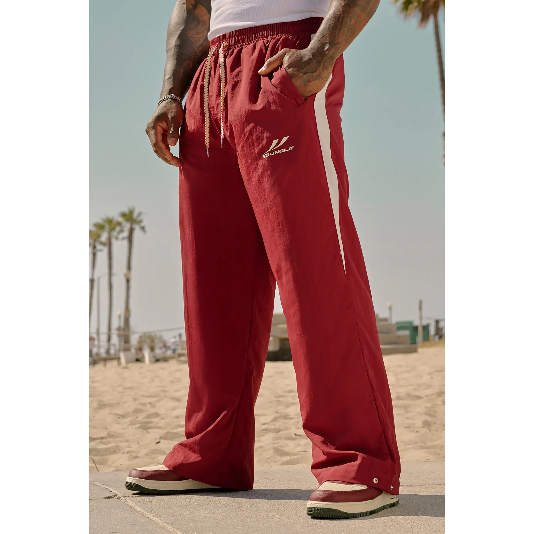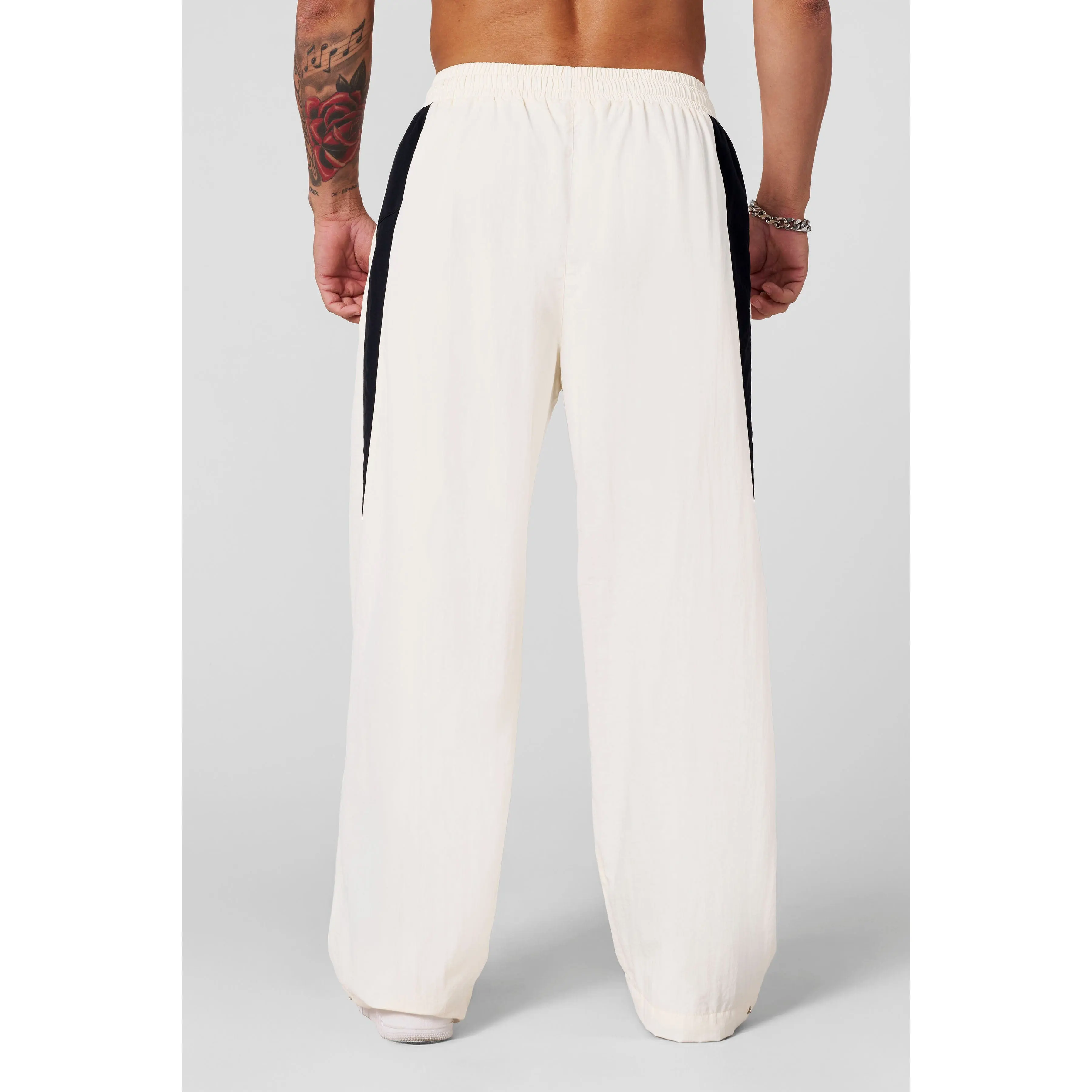 DESIGN: The Encore Track Pants bring retro sport vibes with a modern twist. Made from ultra-lightweight 120 GSM polyamide, theyâre built for all-day comfort and movement. The wide-leg fit features a snap-button bottom for adjustable stylingâwear them loose or cinched. Finished with bold contrast panels and a clean no-cuff look.