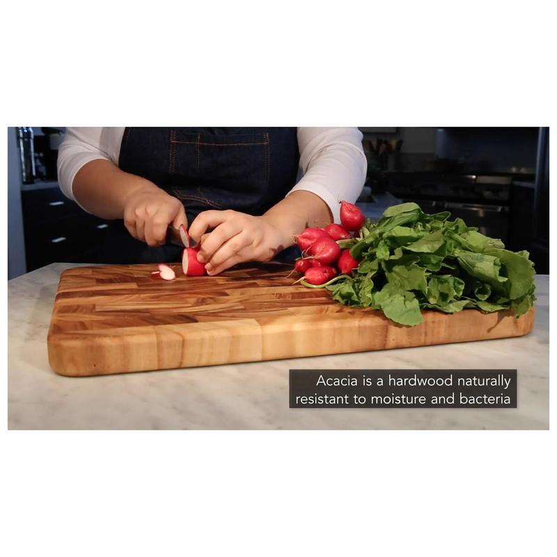 Transform your kitchen routine with this Ironwood Gourmet large end grain wood cutting board. Crafted from stunning acacia wood, this cutting board not only enhances your prep work but also serves as a beautiful serving piece for entertaining. Its robust construction provides the durability you need for all your culinary adventures. From Ironwood Gourmet.