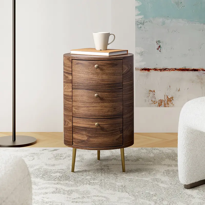 Hulala Etta 26'' Tall Drum 3 Drawer End Table, Solid and Manufactured Wood, with Square Drawers and Storage Cabinet, Metal Legs