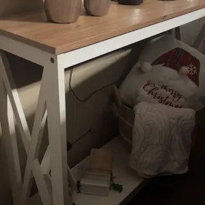 The X-shaped design enhances the stability of this drawer side table, and the table perfectly matches with your other furniture. The max load capacity of the top is 30 kg/66 lb, and the max load capacity of each shelf is 10kg/22 lb.
