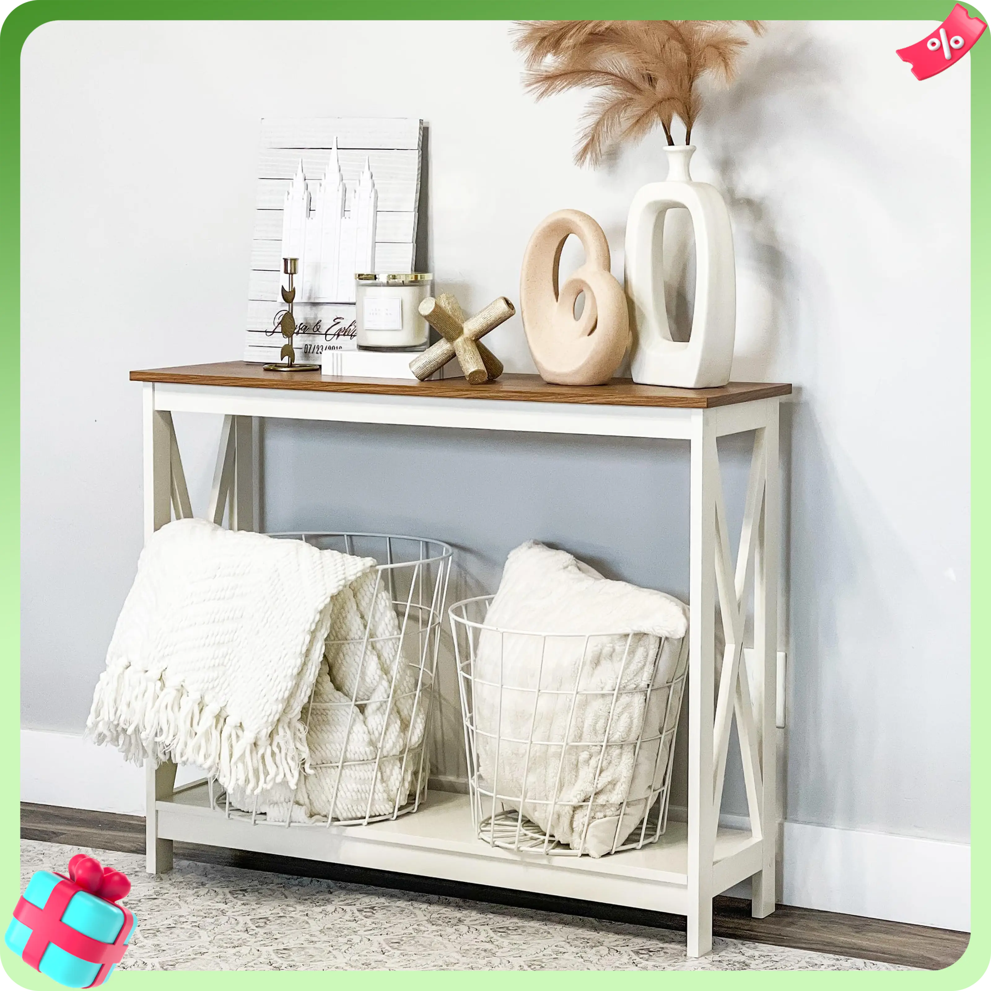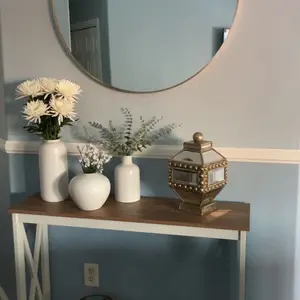 An end table that can hold an alarm clock, succulent pots, decorative items, books, etc., is quite versatile. The farmhouse hue complements other furniture and enhances the room's appearance.