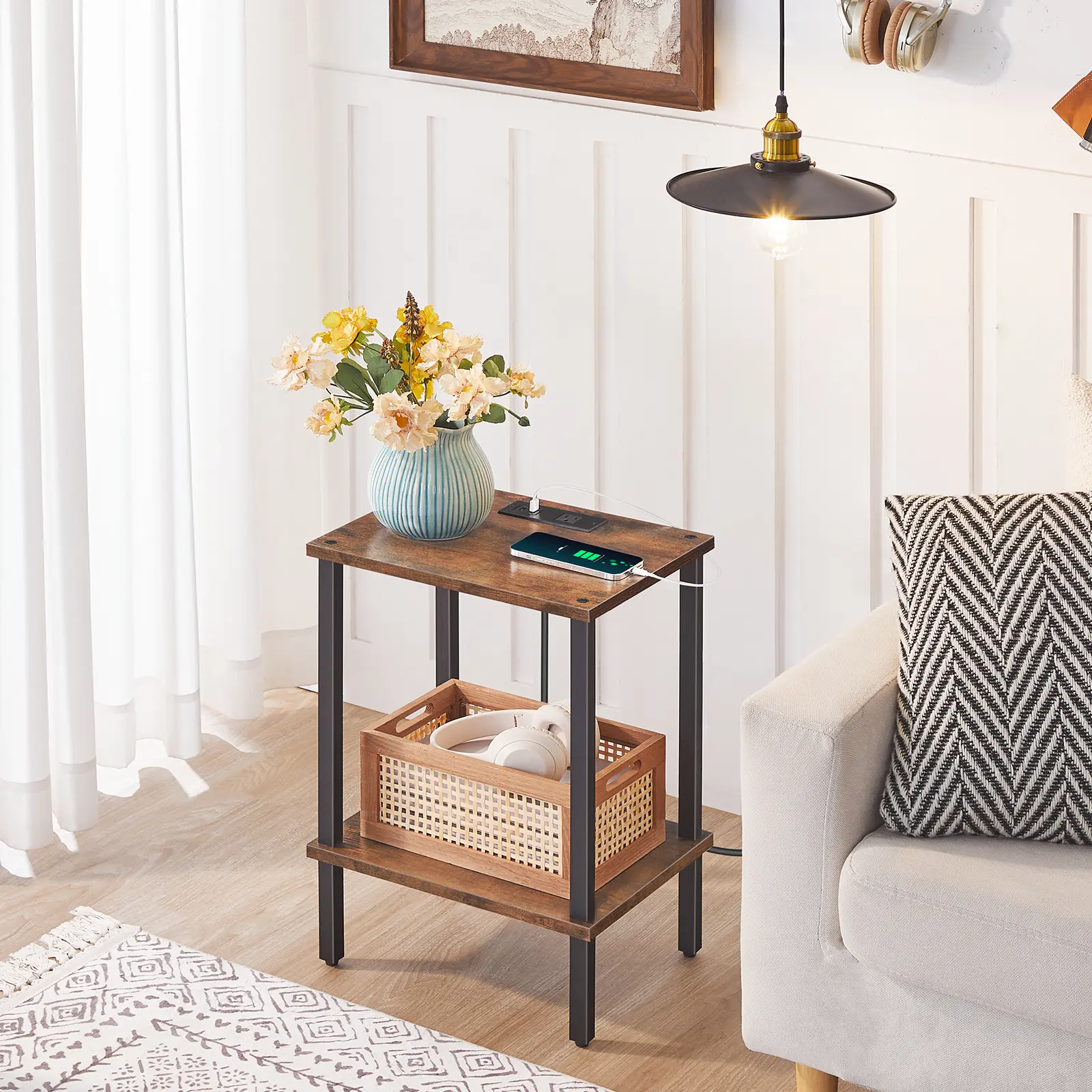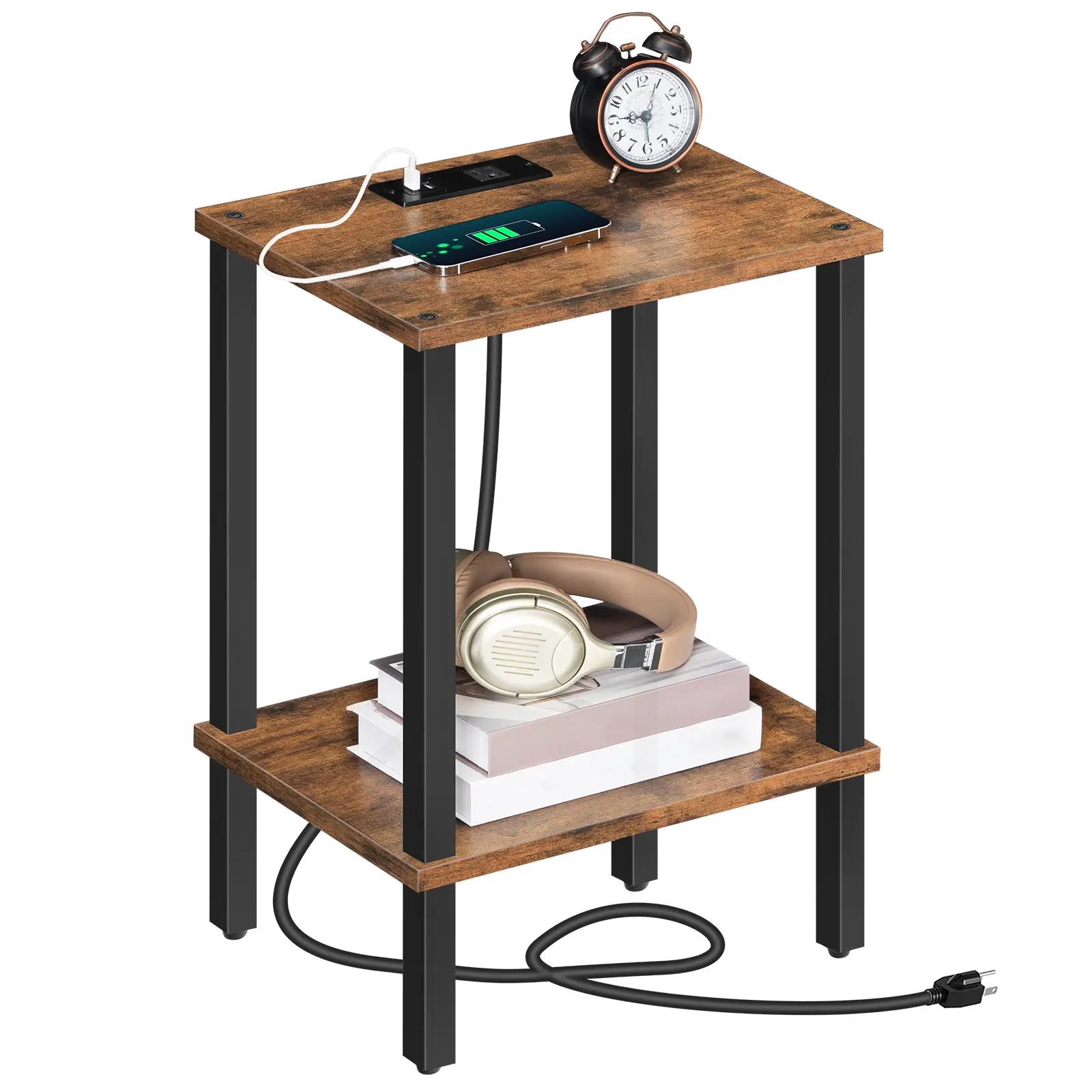 ·Convenient Charging Station: Are your devices low battery? This side table has a socket including 1 outlet, 2 USB ports, and a 4.9 ft power cord with the proper spacing among the ports to easily charge your phone, desk lamp, etc at the same time