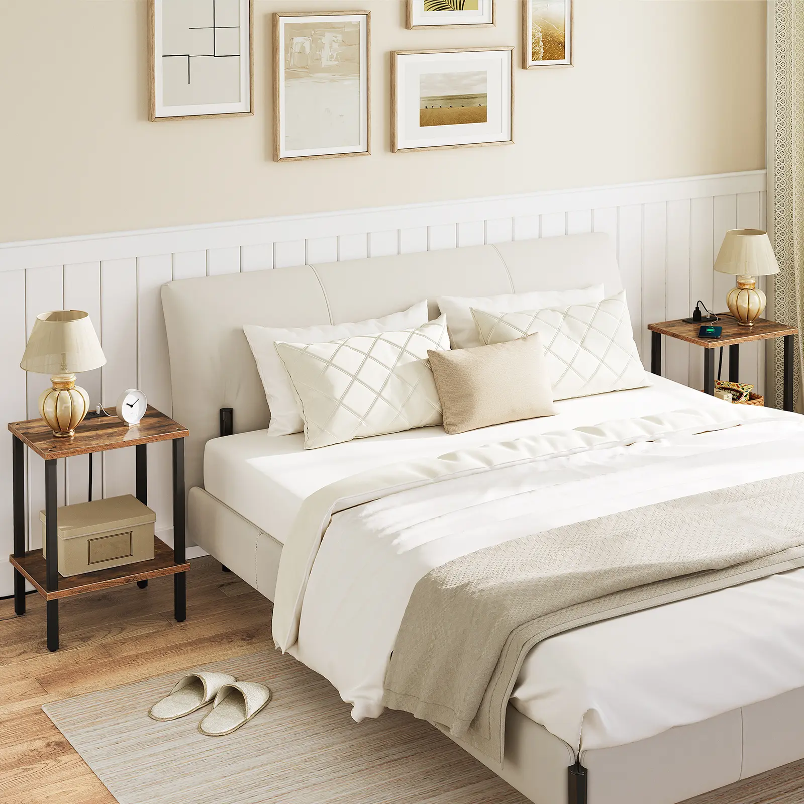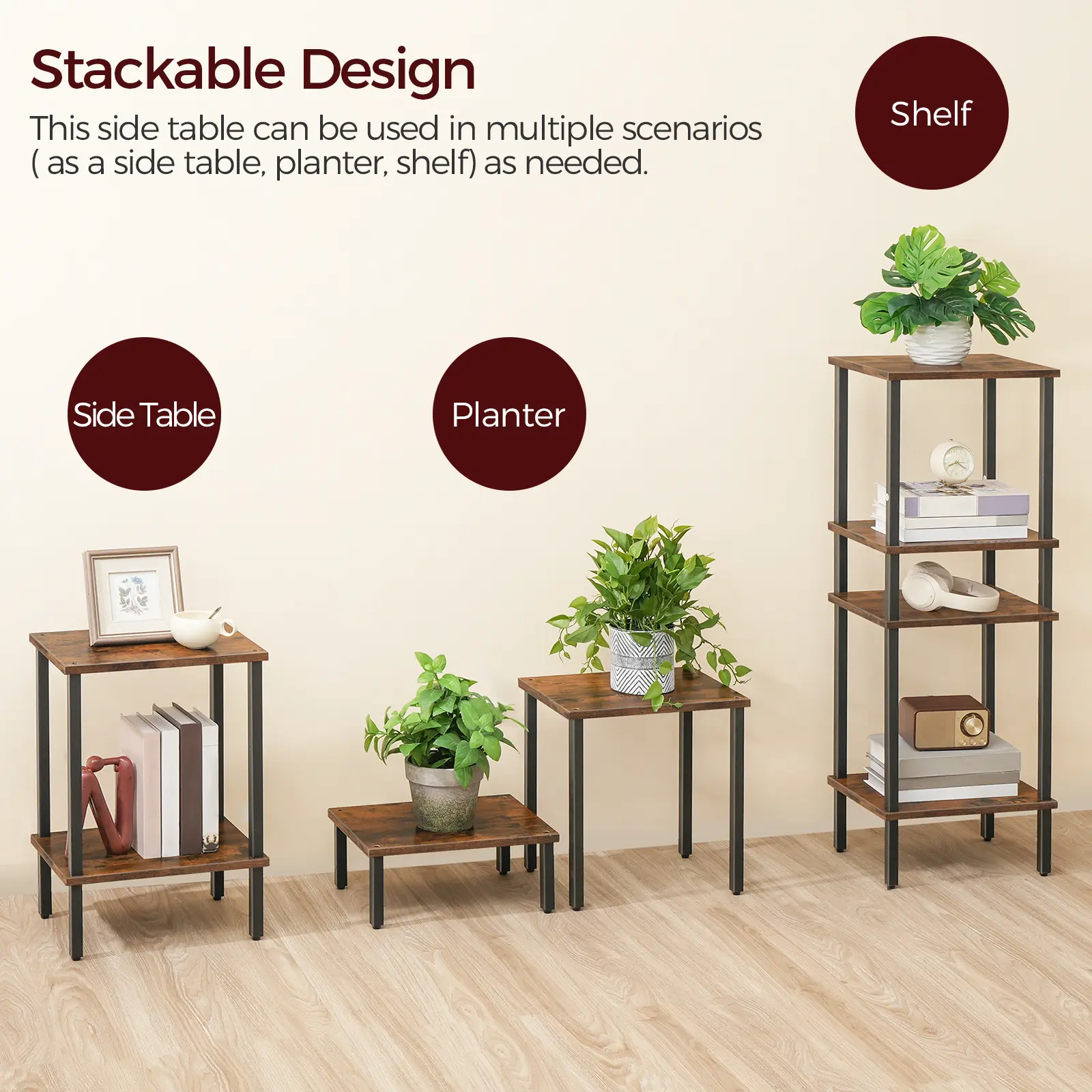·Right Storage Space: The distance between the 2 shelves gives you enough storage space to categorize all kinds of books, storage baskets, decorations, etc. The nightstand has a stackable design so you can create more space if you use multiple ones